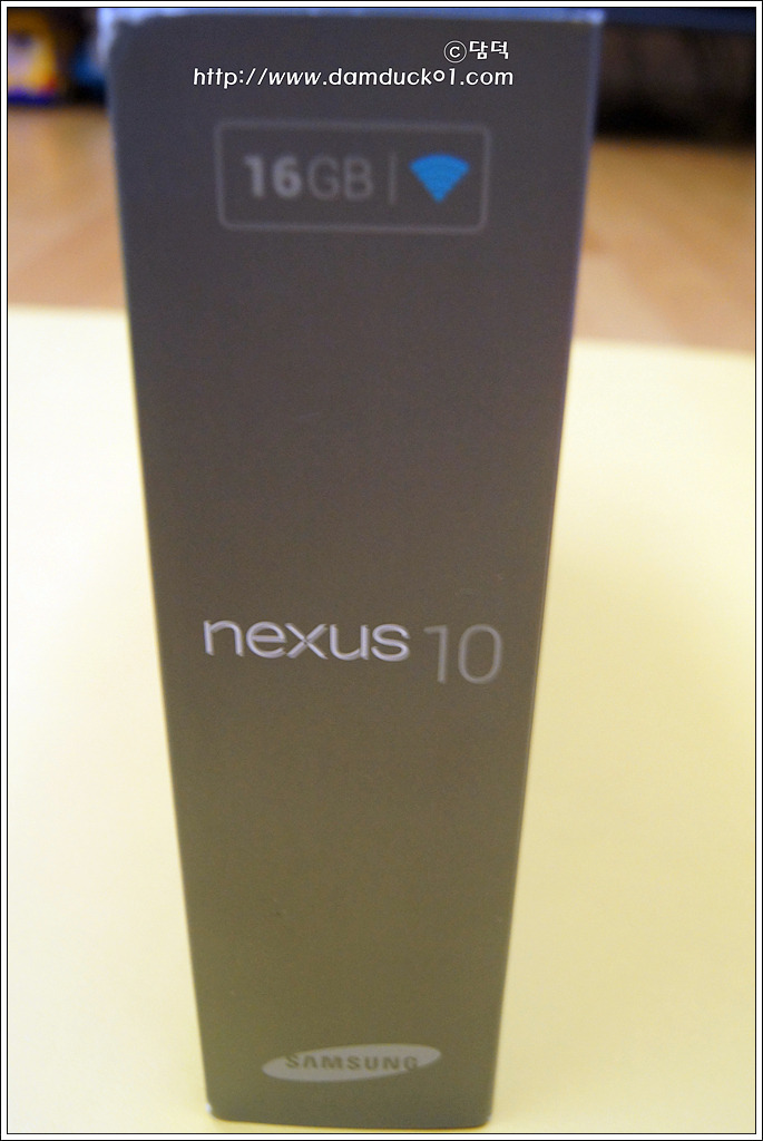 좌우 측면 모습입니다. nexus 10 은 구글과 삼성이 함께 만든 레퍼런스인 건 아시죠? 그래서 하단에 삼성 로고가 인쇄되어 있고요 16GB 와이파이 전용 모델이라는 걸 나타내고 있습니다.