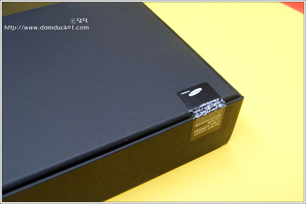 박스 뒷면에는 뭐 위에서 살펴봤던 간략한 스펙이 영어로 적혀 있지만 위에서 언급한 스펙 내용 보셨으니 패스하고 겉 박스를 옆으로 가볍게 제거하면 본(?) 박스가 나타납니다. 올 검정의 심플함 속에 봉인 스티커와 제품정보가 적혀 있는 스티커가 붙어 있습니다.