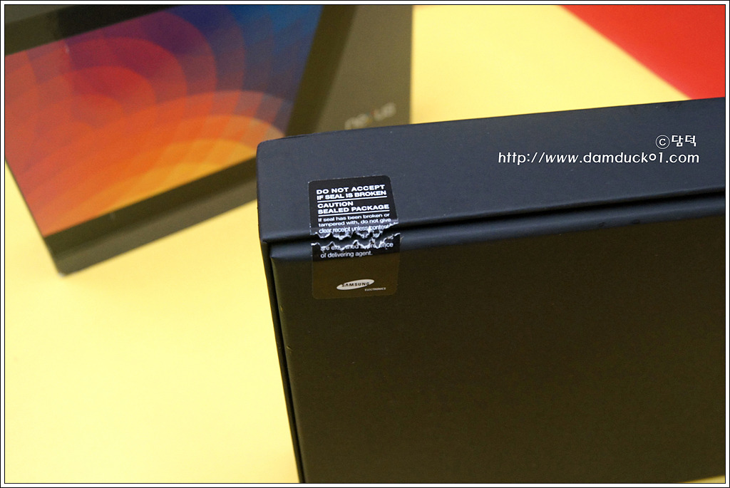 가볍게 포장 박스 뜯어내고 nexus 10의 정식(?) 박스가 모습을 드러냅니다. 여기서 nexus 10의 스펙을 간략히 살펴봐야죠. 먼저 스크린입니다. 10.005인치의 크기에 해상도가 무려 2660 x 1600 거기에 300 ppi 현존하는 태블릿 중에 최고의 해상도입니다. 그리고 코닝사의 고릴라 글라스 2로 무장하고 있고요 카메라는 요즘 나온 제품 치고는 화소수가 낮은 후면 500만 전면 1.9만으로 장착하고 잇습니다. CPU 역시 쿼드가 아닌 삼성의 듀얼코어(Exynos 5 Dual processor)가 장착되어 있습니다.