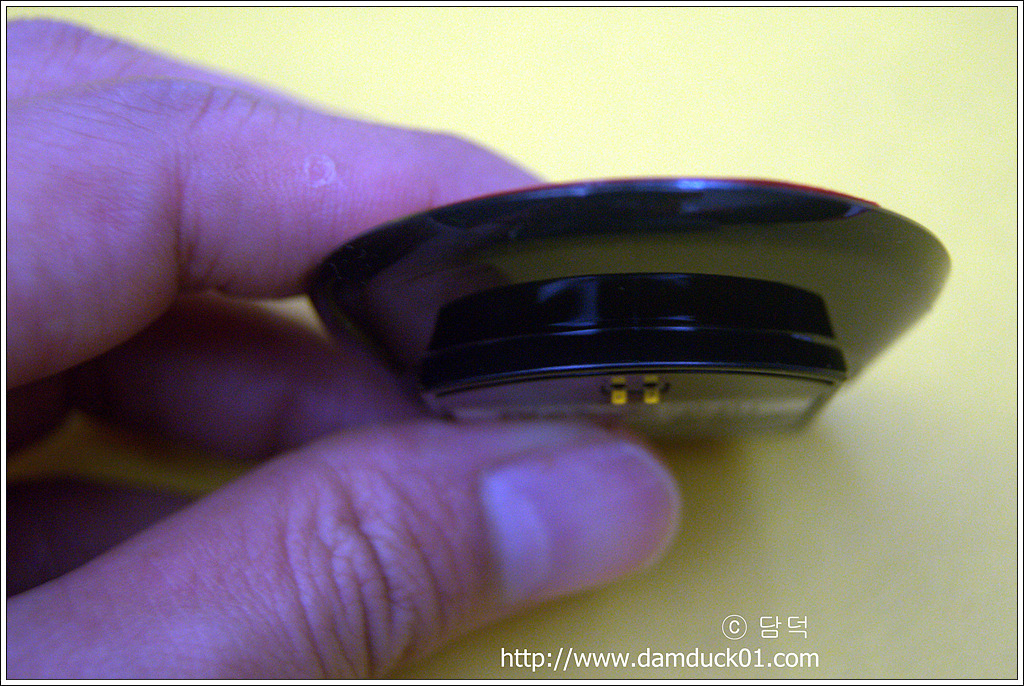 아랫면에는 배터리 투입구와 적외선 송수신부가 위치하고 있습니다. SET-525는 적외선(IR) 방식이라 선팅이 진하거나 송수신부에 장애물이 있으면 통신이 잘 되지 않습니다. 무선주파수 방식은 거리도 더 길고 부착 위치도 제한이 적어 좋지만 가격이 너무 비싸요. 위에서도 말씀드렸다시피 전 그냥 무선배터리 방식에 깔끔하면 된다는 생각이었으므로 게다가 충전할 일이 거의 없겠더라고요 요 녀석은 ^^;;