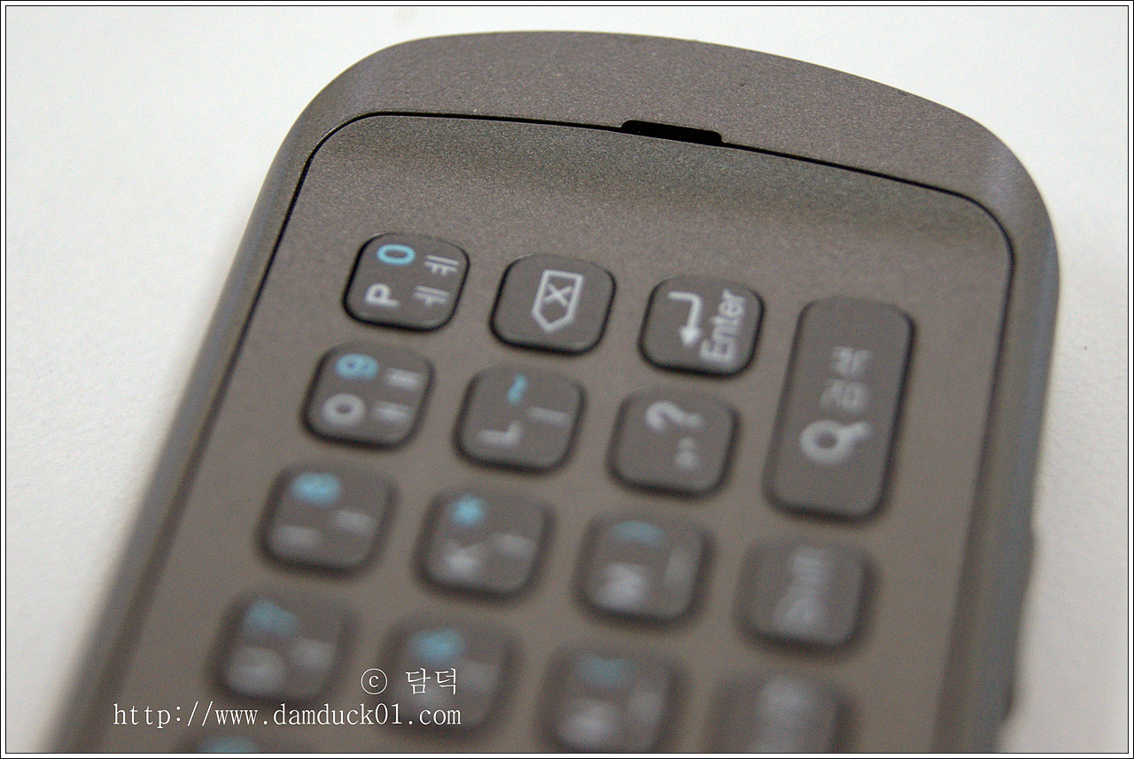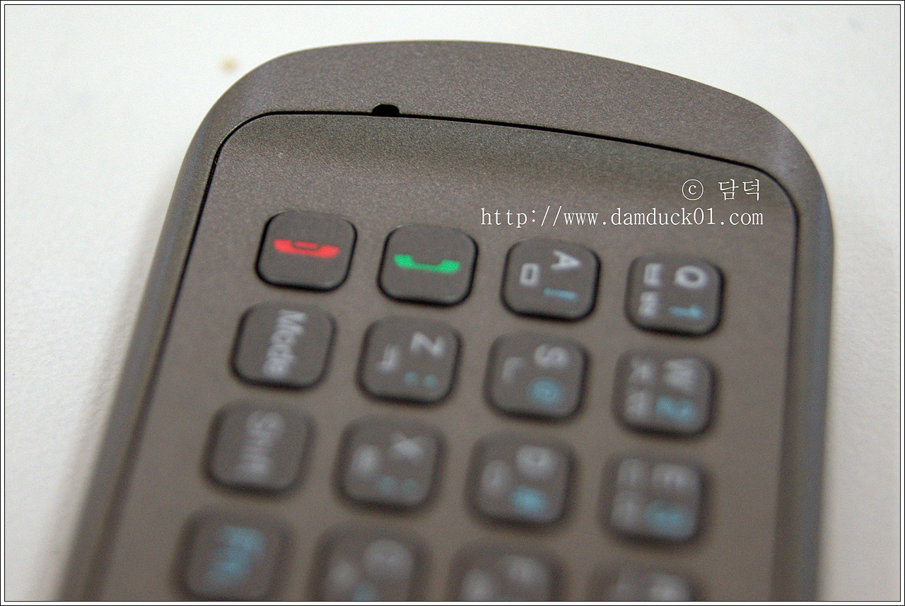 키보드를 자세히 보시면 위에서 한번 얘기했듯이 휴대폰의 전화기를 대신 사용할 수 있도록 되어 있는데 전화 걸기, 전화 끊기 버튼과 수신부 스피커, 송신부 마이크가 자리 잡고 있는 게 보이시죠? 한 3일 정도 사용하고 있는데 100%는 아니지만 나름 유용하게 사용이 되는군요. 기회가 된다면 요 녀석은 사용기를 한편 쓰게 될지도 모르겠네요. ^^;