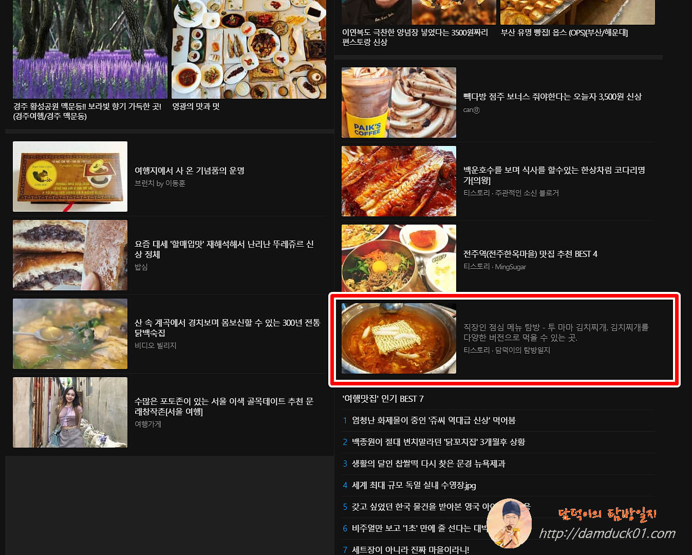 다음 PC 사이트의 여행맛집 채널에 등록이 되면 다음 모바일 사이트에도 등록이 된 경우가 대부분이죠. 역시나 어제도 다음 모바일 사이트의 여행맛집 채널에서도 제 글을 확인할 수 있었습니다.