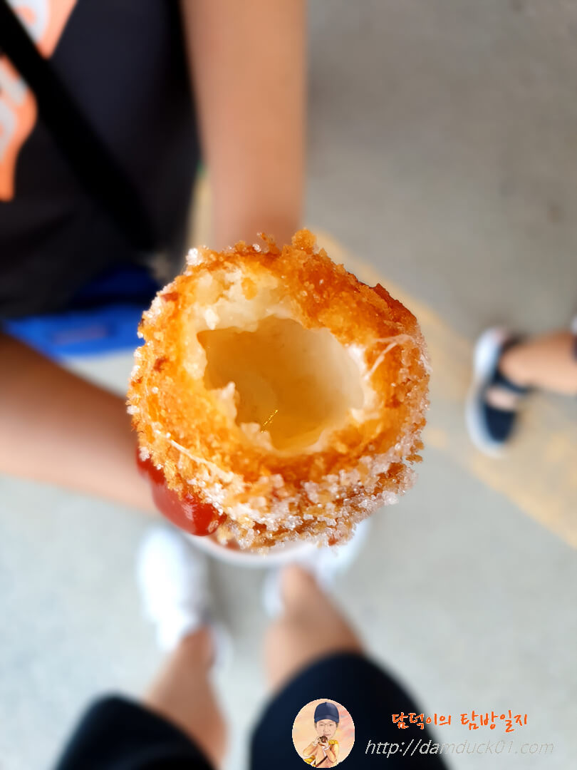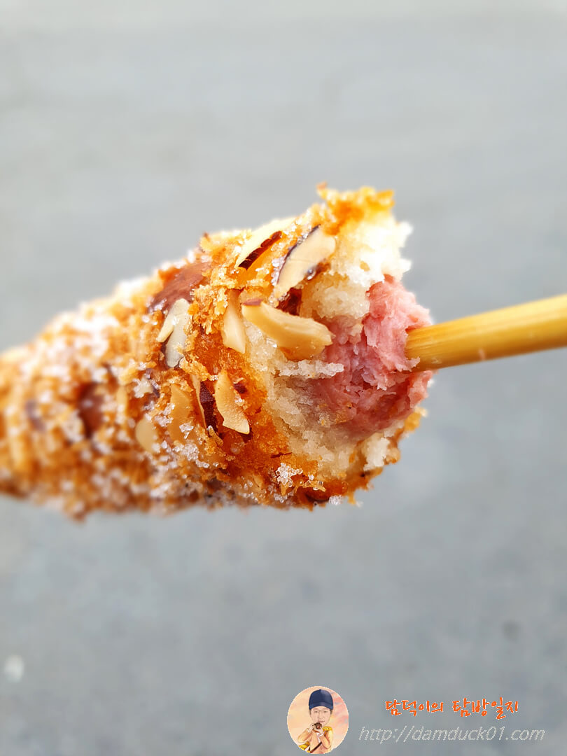 아몬드 핫도그 안에는 '아직도 이 소시지가 나오는구나'라는 생각이 들 정도로 옛날에 봤던 소시지가 들어있네요.
