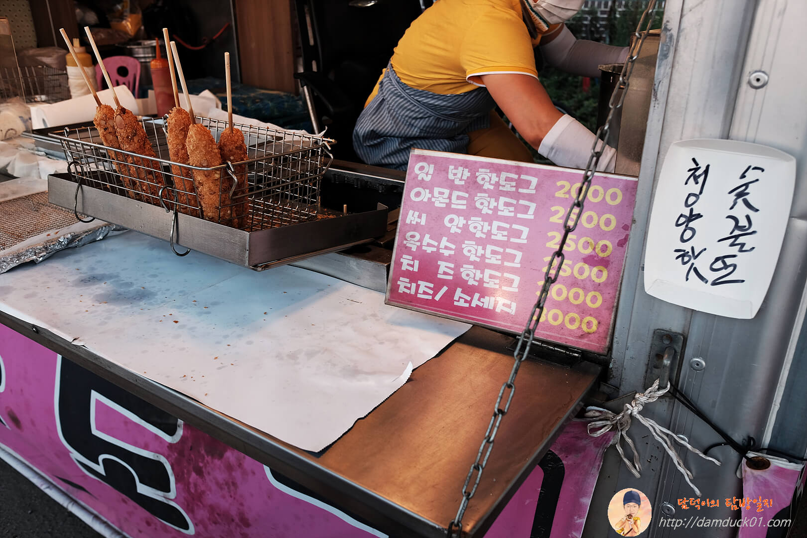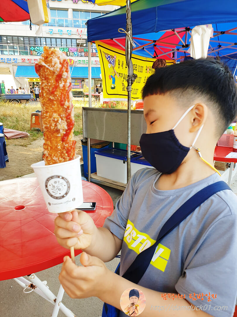 궁평항 입구 쪽에 간식 먹으러 핫도그를 파는 곳에 들러봤어요. 일반 핫도그 외에도 아몬드, 씨앗, 옥수수, 치즈 그리고 치즈/소시지까지 꽤 다양한 종류의 핫도그를 팔고 있었답니다.