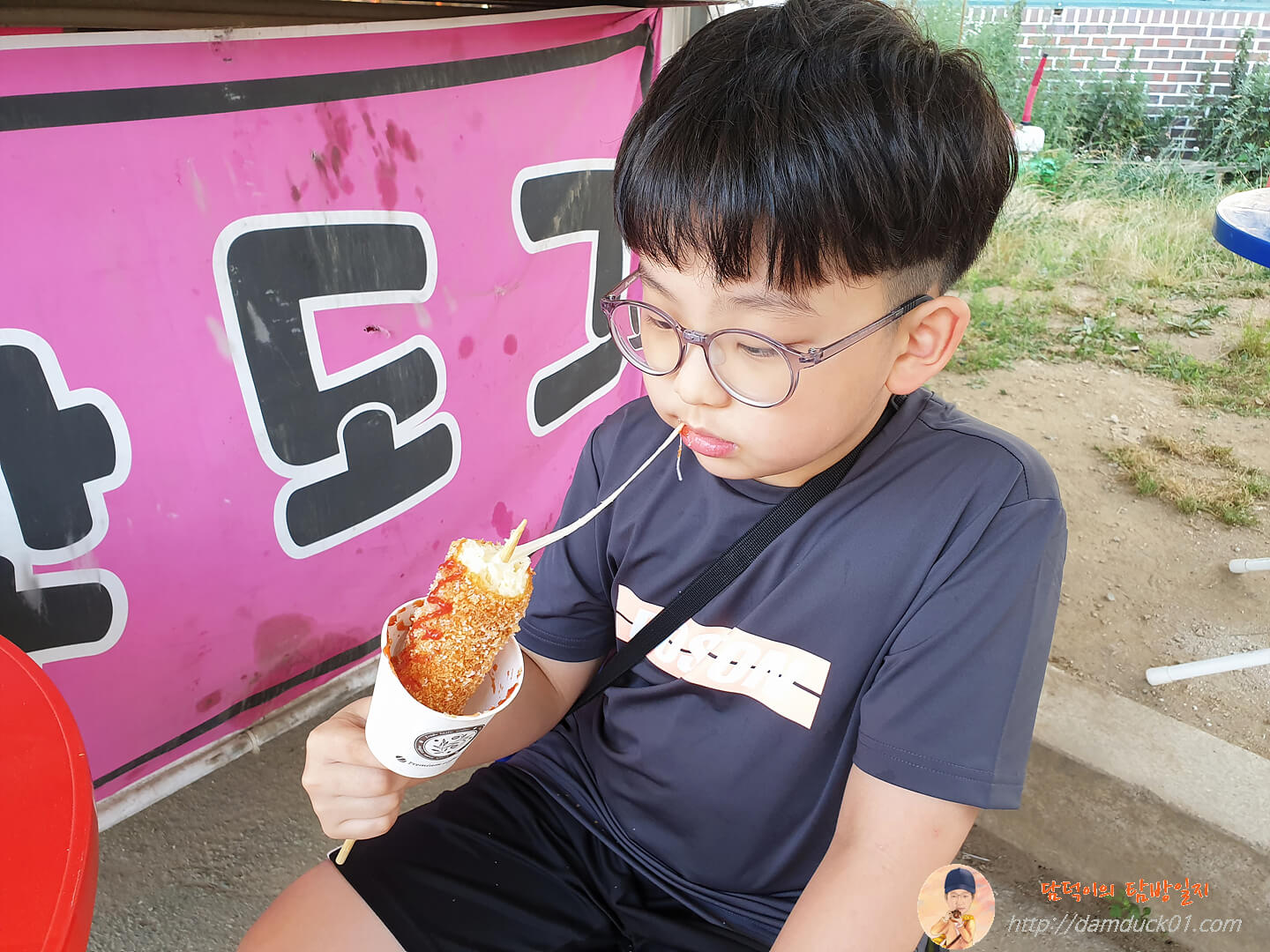 하람이는 설탕 듬뿍. 케첩도 좌르륵 뿌려주고, 치즈 핫도그는 안에 소시지가 없고 치즈가 주르륵~