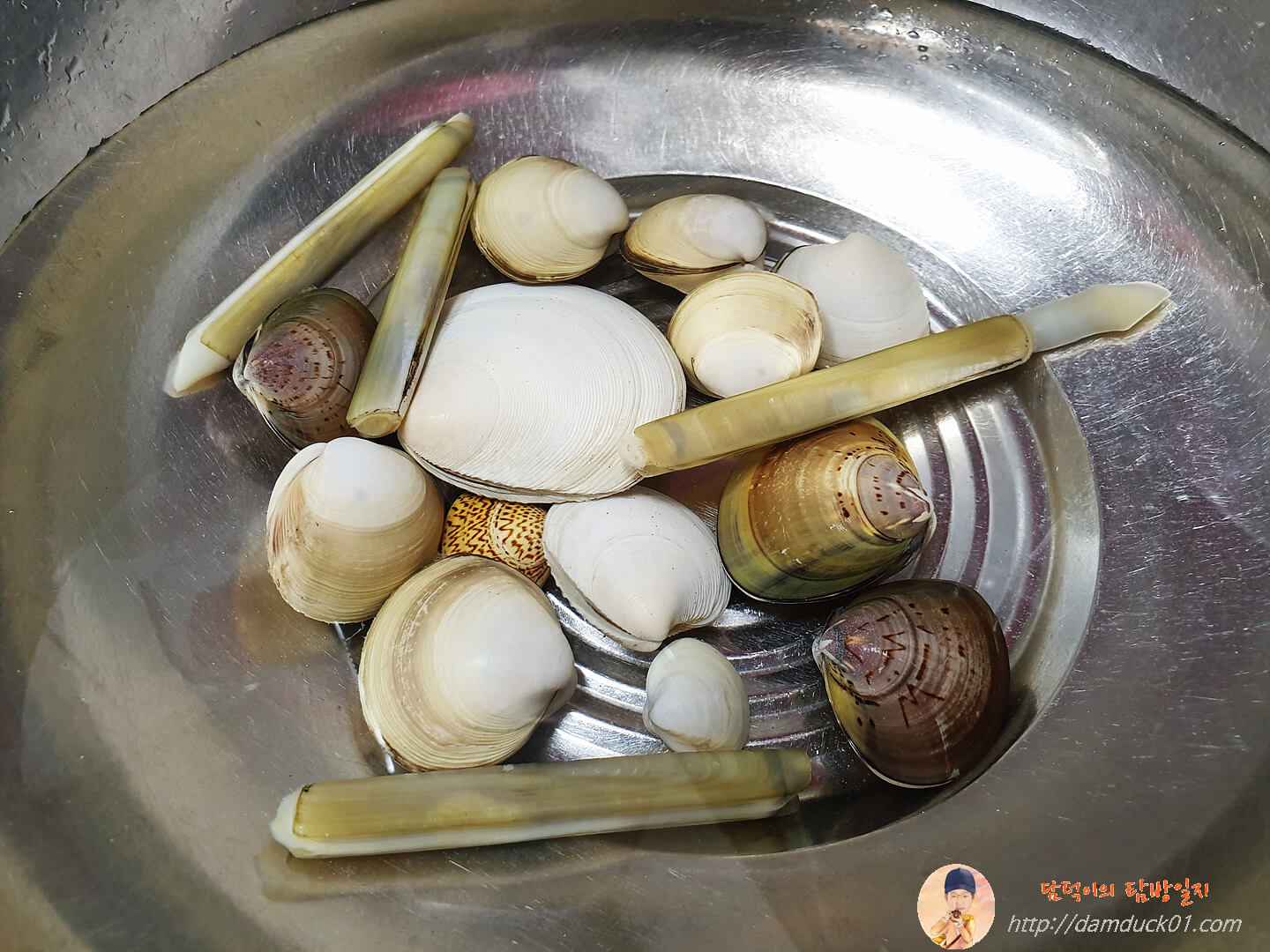 그렇게 잡아온 갯벌의 수확물, 저는 맛조개는 하나도 못 잡고 조개만 캐 왔네요. 우리 가족 같은 초보자들도 이 정도는 잡을 수 있더라고요. 다음에 갈 때는 도구도 빌려서 제대로 맛조개 잡기에 도전하기로 했는데 그때가 언제가 될지는 모르겠지만 일단 잡아온 조개들은 저는 못 먹고 아이들만 삶아서 먹였다는데 특히 가람이가 그렇게 맛있게 먹었다네요. 맛조개가 정말 맛있대요.