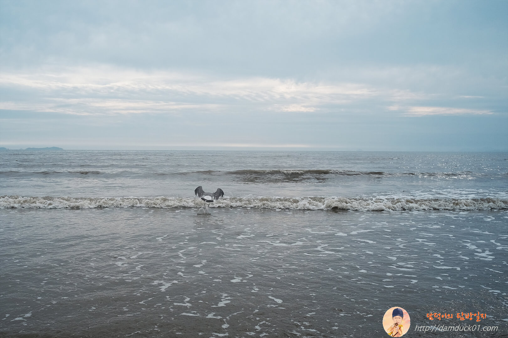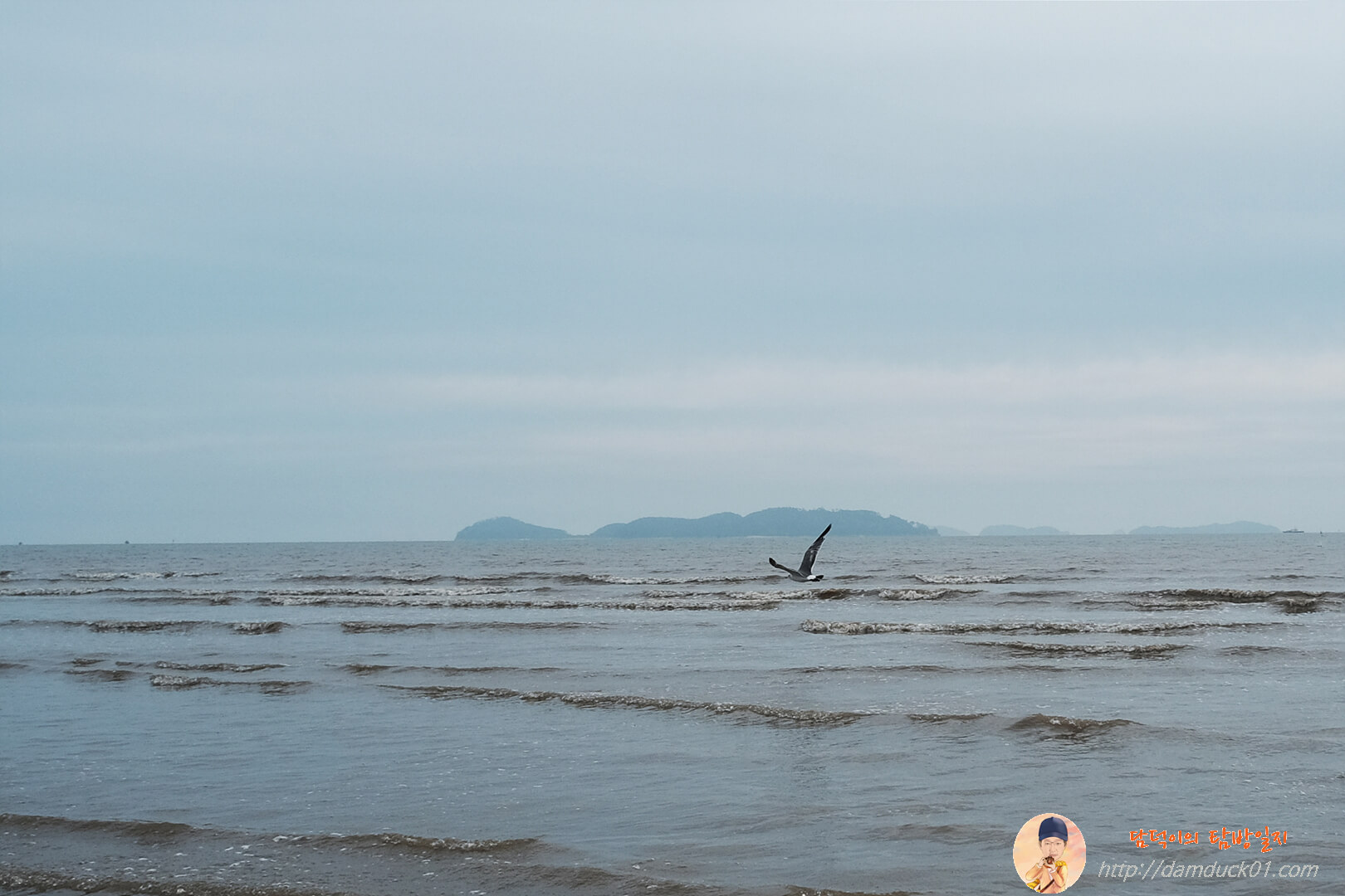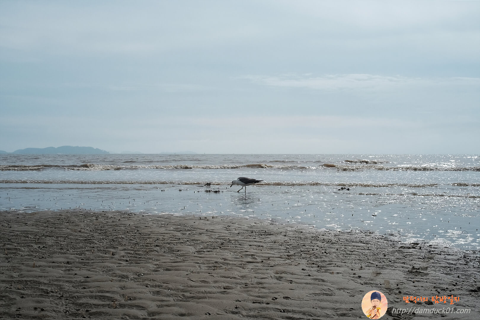 갈매기 한 마리는 뭘 찾는 건지 낮게 바다 위를 날아가고 있습니다. 물이 들어오면서 먹을거리가 함께 오는 걸까요?