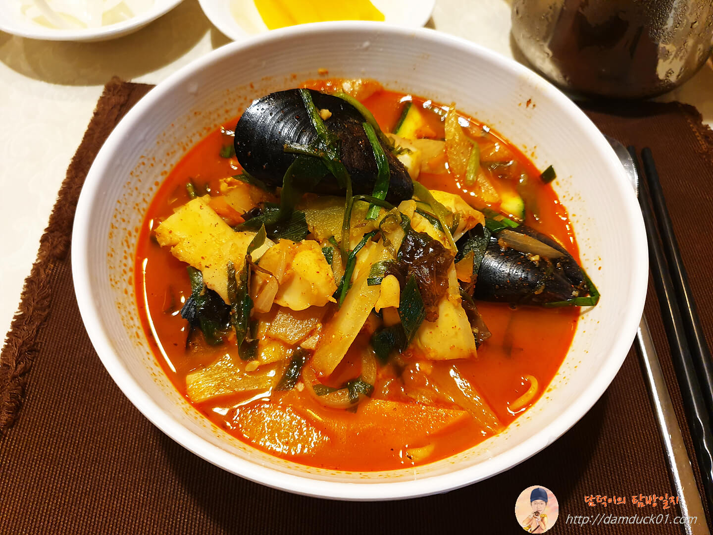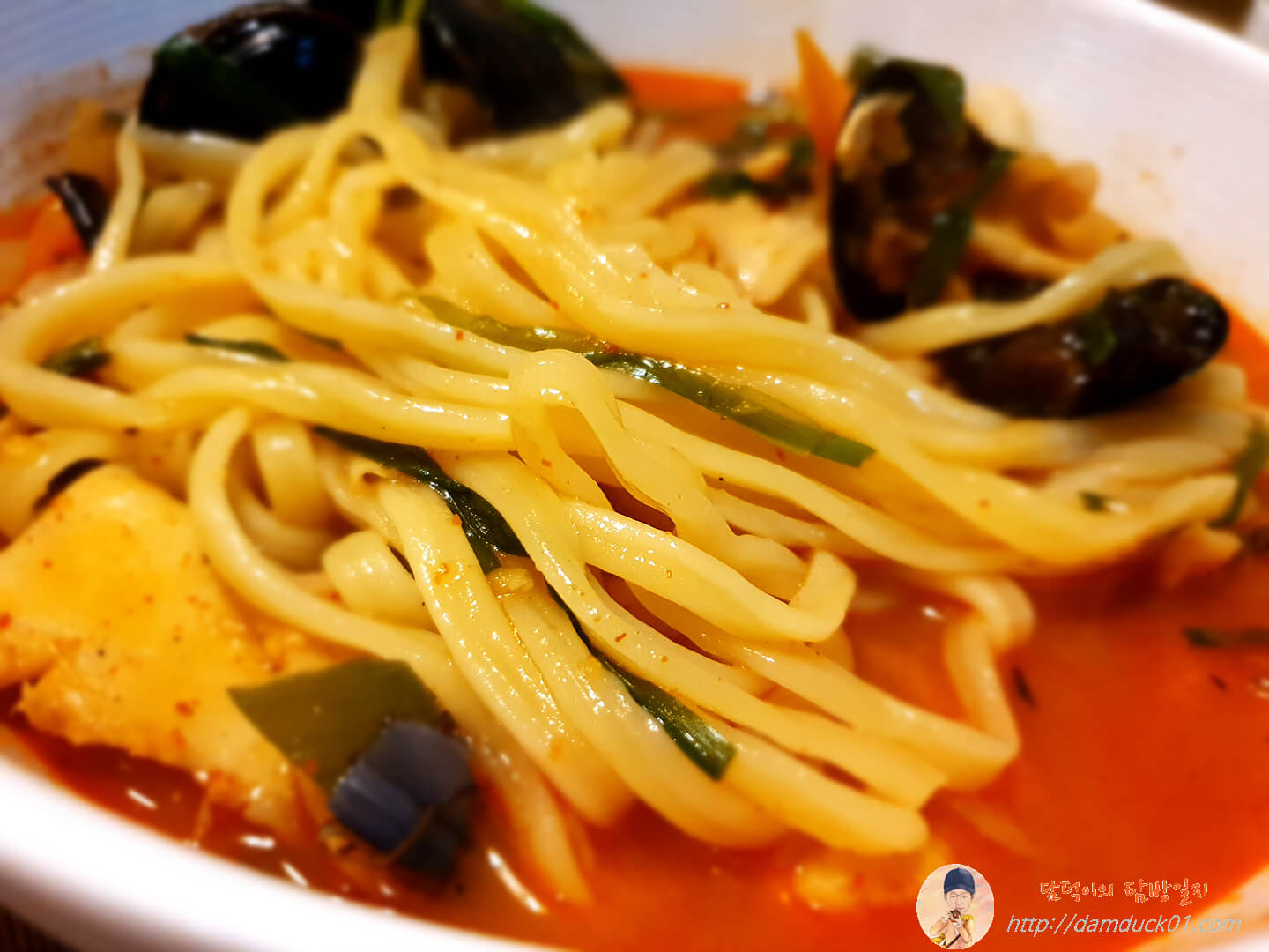 큼직한 오징어가 눈에 들어오고 시뻘건 국물이 제대로 얼큰할 것 같은 비주얼입니다.