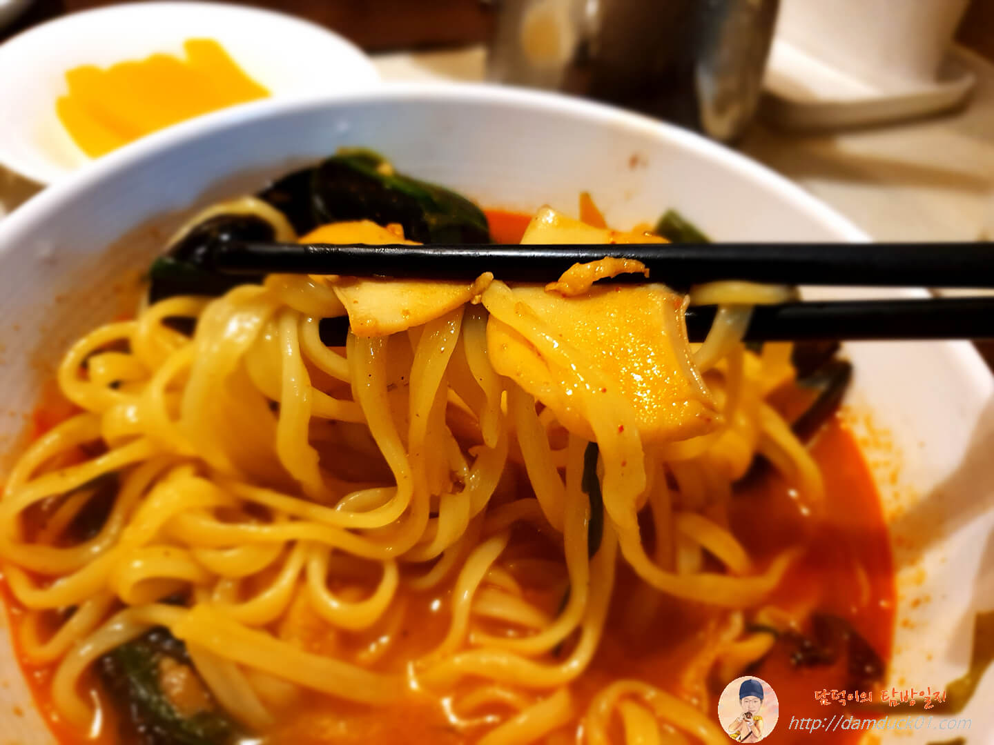 저는 조금 더 얼큰했으면 좋았겠지만 그래도 큼직한 오징어랑 면을 함께 들어서 후루룩.