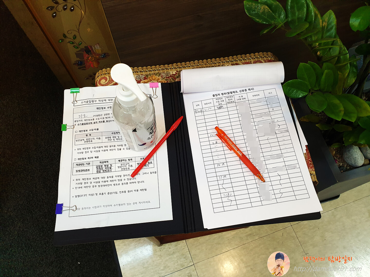 그런데 입구에 이렇게 출입자 명부라는 게 비치되어 있네요.