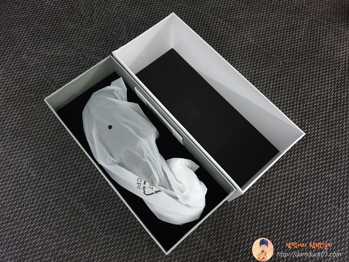 바로 상자를 열어보죠. 상자가 꽉 맞게 디자인되어서 여는 게 쉽지는 않네요. 가볍게 위 상자를 잡고 탈탈 털어주니까 분리가 됐습니다.