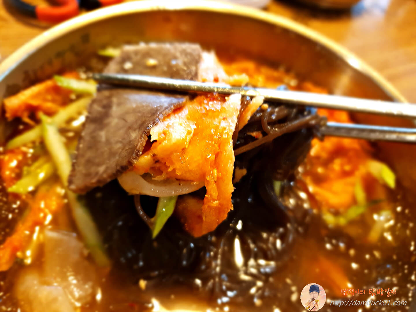 고기랑 더덕, 면을 한 번에 들어서 후루룩~