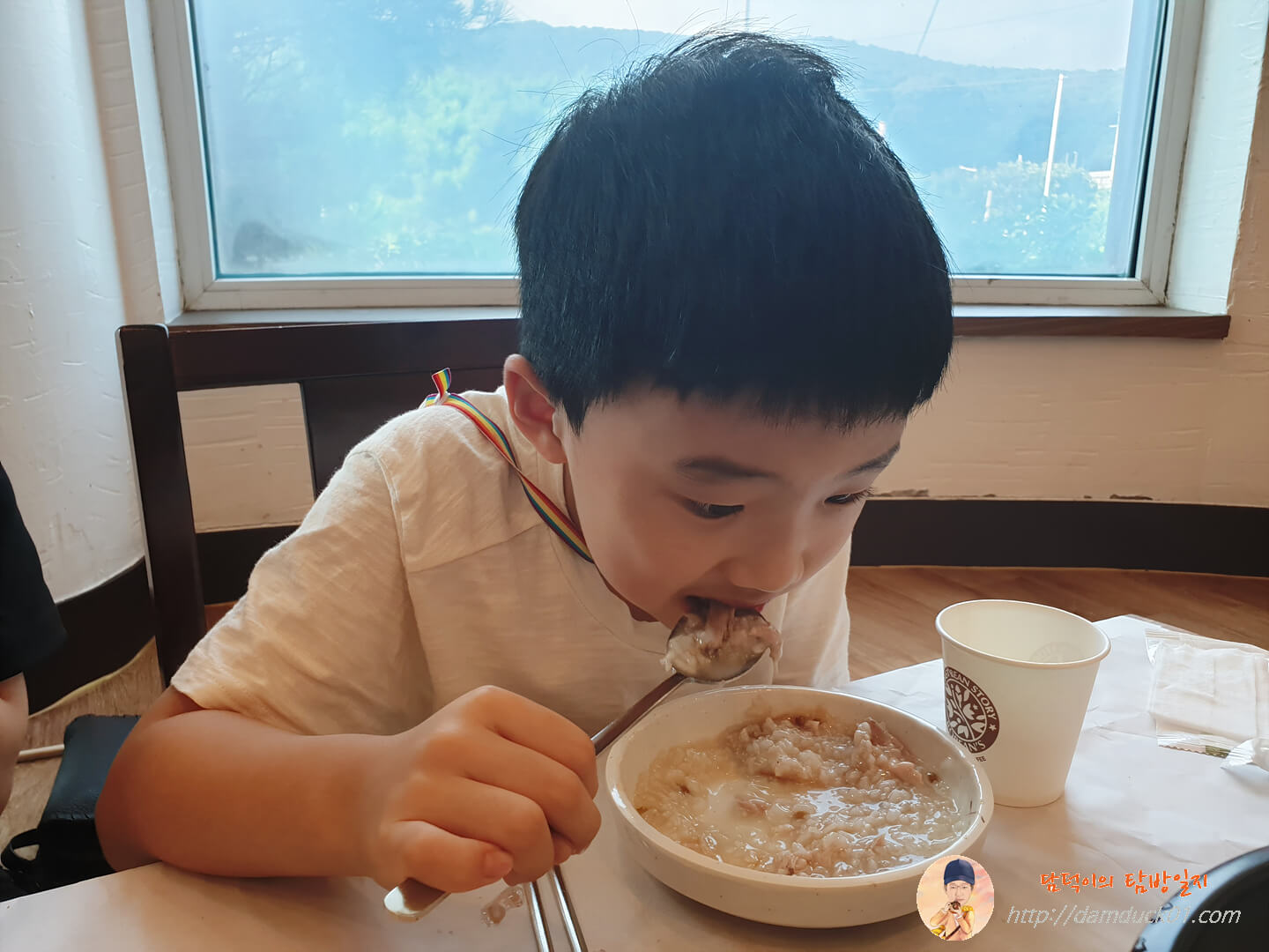 먹고 싶다고 한 가람이도 그렇고 하람이도 엄청 잘 먹더라고요. 평소에는 우리 가족 4명이 배부르게 먹고도 남아서 닭죽은 포장해서 가져오고 다음날 아침에도 먹고 했는데 이날은 아이들이 평소보다 더 잘 먹더라고요.