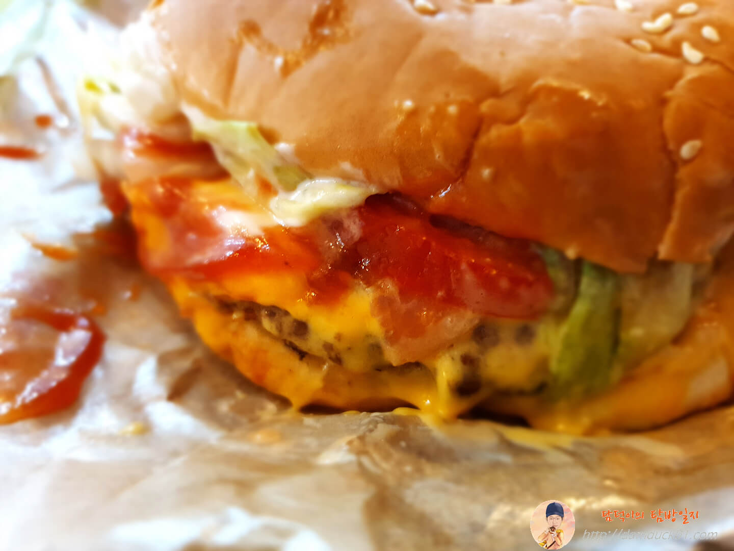 먹다 보니 패티 위에 있는데 두께가 너무 얇고 소스가 넘쳐서 베이컨 맛은 잘 안 느껴지긴 했어요.