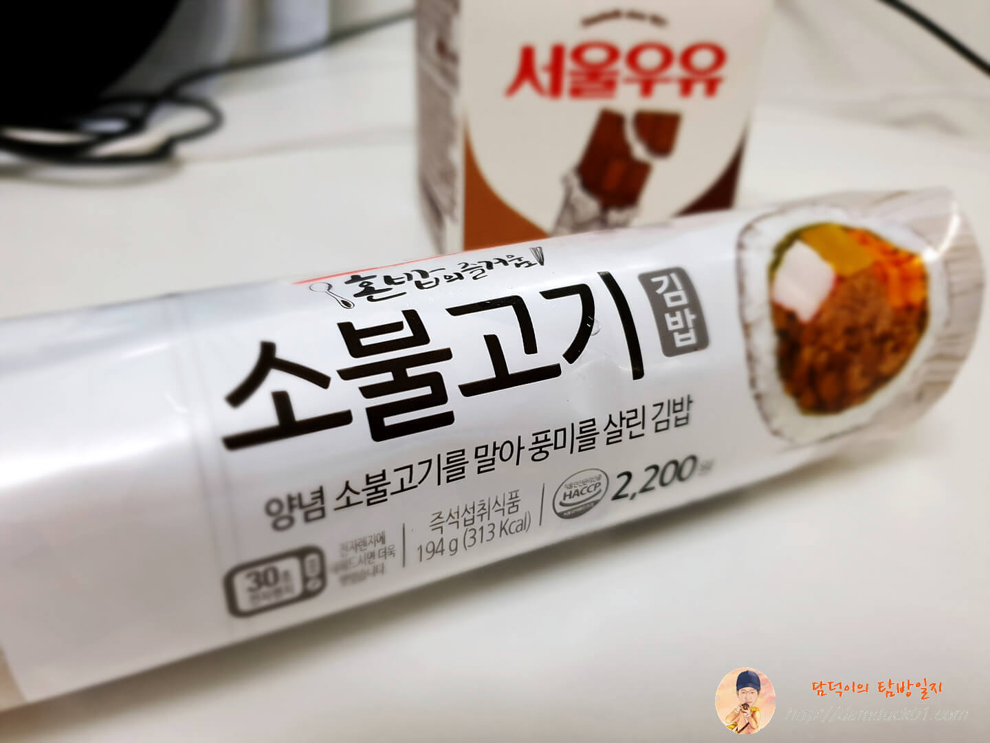 직장인 점심 메뉴 탐방 - 혼밥의 즐거움. 소불고기 김밥. 그리고 서울우유 초콜릿.
