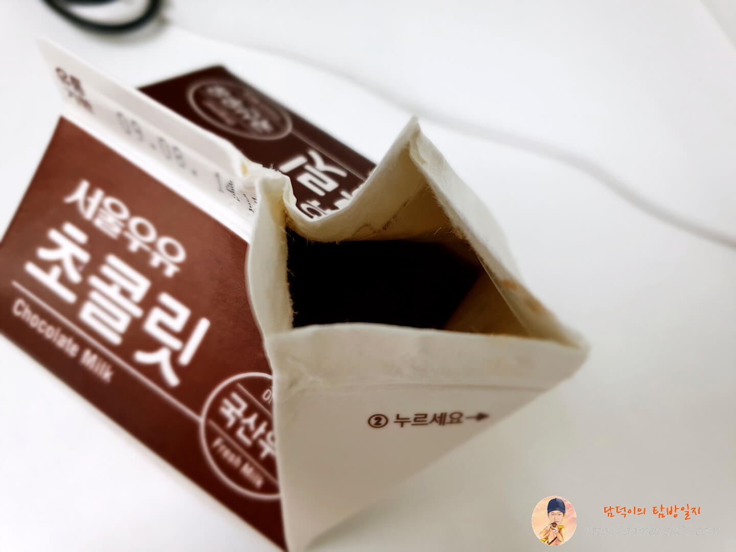 초코우유는 가볍게 쭉 열어서 먹을 준비 끝!