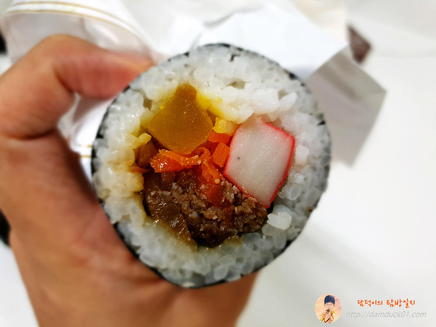 가운데는 끄트머리 김밥보다는 양호한 비주얼의 김밥이긴 한데 역시나 광고 사진과의 괴리감은 어쩔 수 없네요.