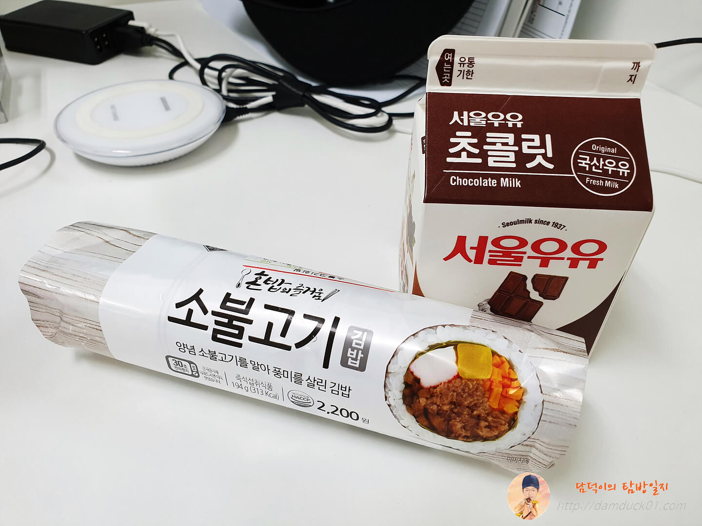 직장인 점심 메뉴 탐방 - 혼밥의 즐거움. 소불고기 김밥. 그리고 서울우유 초콜릿.