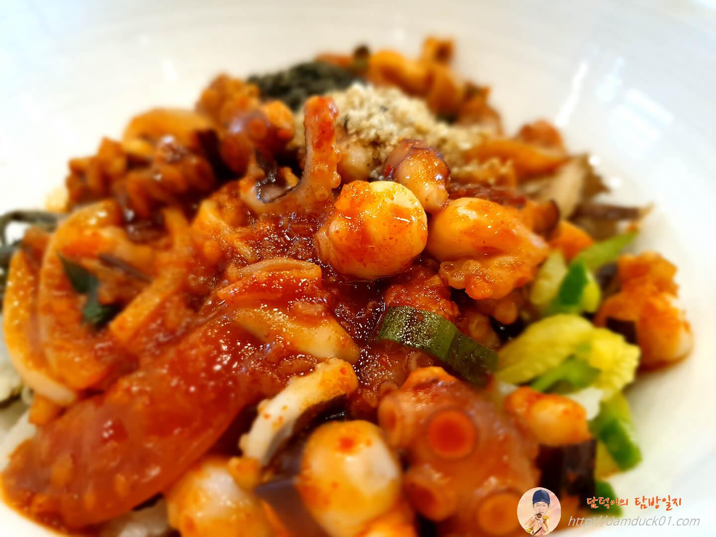 그래서 다시 메뉴판을 스캔 후 주문한 메뉴는 매콤 낙지 비빔밥입니다.