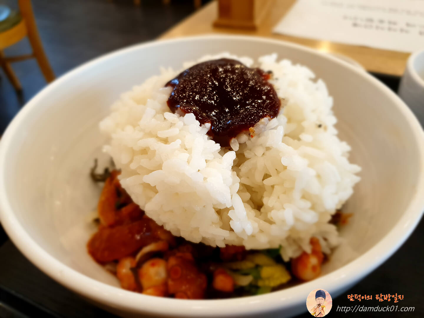 매콤 낙지 비빔밥이라고 하지만 많이 맵지 않고 전체적으로 간이 세지도 않아서 담백한 음식 좋아하시는 분들은 꽤 만족하실 수 있을 거 같은 메뉴네요.