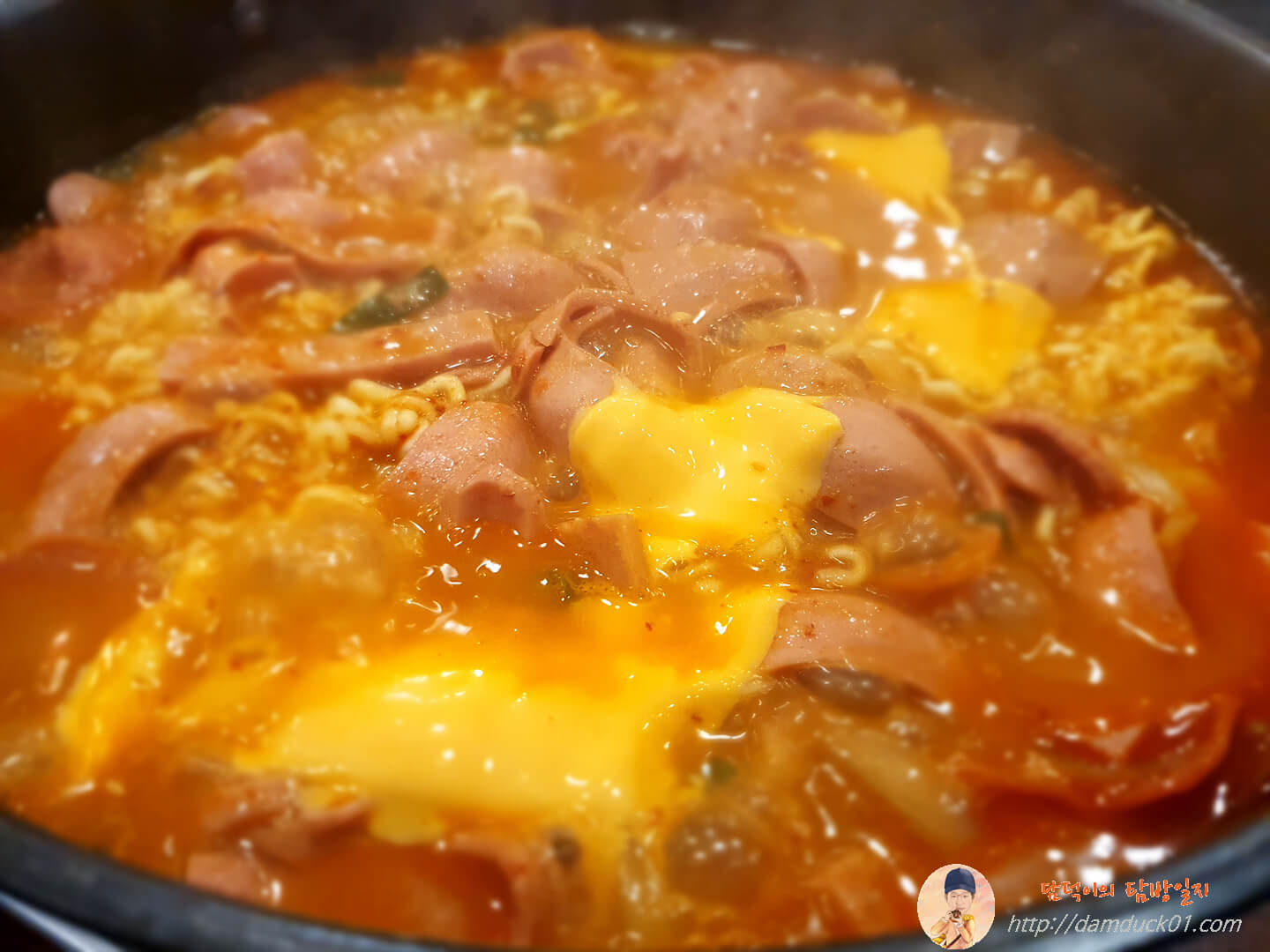 바로 나온 낭만부대찌개 3인분입니다.