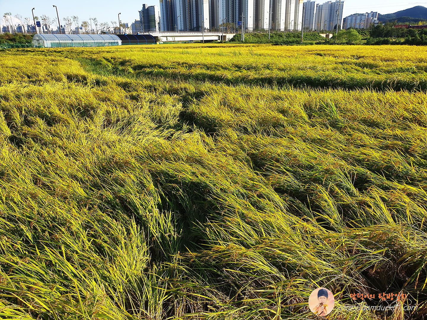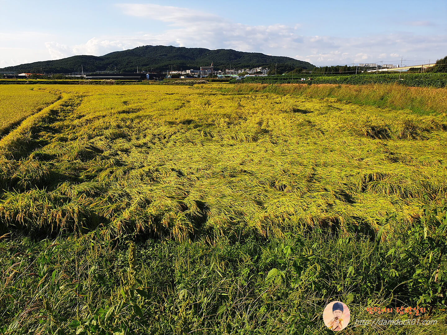 황금빛으로 보기 좋았어야 할 벼들이 많이 쓰러져 있더라고요.