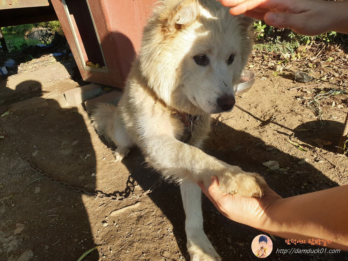 먹을 거 있을 때는 절대 손을 안 주는데 간식 다 주고 나니까 저렇게 이쁘게 손을 내밀어 주네요.
