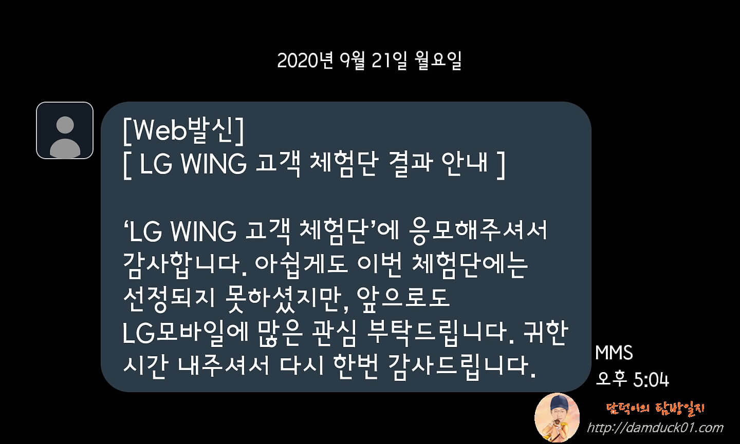 9월 7일부터 17일까지 "LG WING SWIVEL HOLIC 모집"이라는 이름으로 고객 체험단 접수가 진행되었고 어제인 9월 21일 개별 문자로 결과 발표가 있었는데 늘 응모하면서는 '기대하지 말자'라고 생각을 하지만 막상 발표일이 다가올수록 기대를 가지게 되는 건 어쩔 수 없는 거 같아요. 게다가 이번 LG 윙은 새로운 활용 방법들을 찾아보는 재미가 있을 거 같아서 대 놓고 기대를 하고 있었는데요.