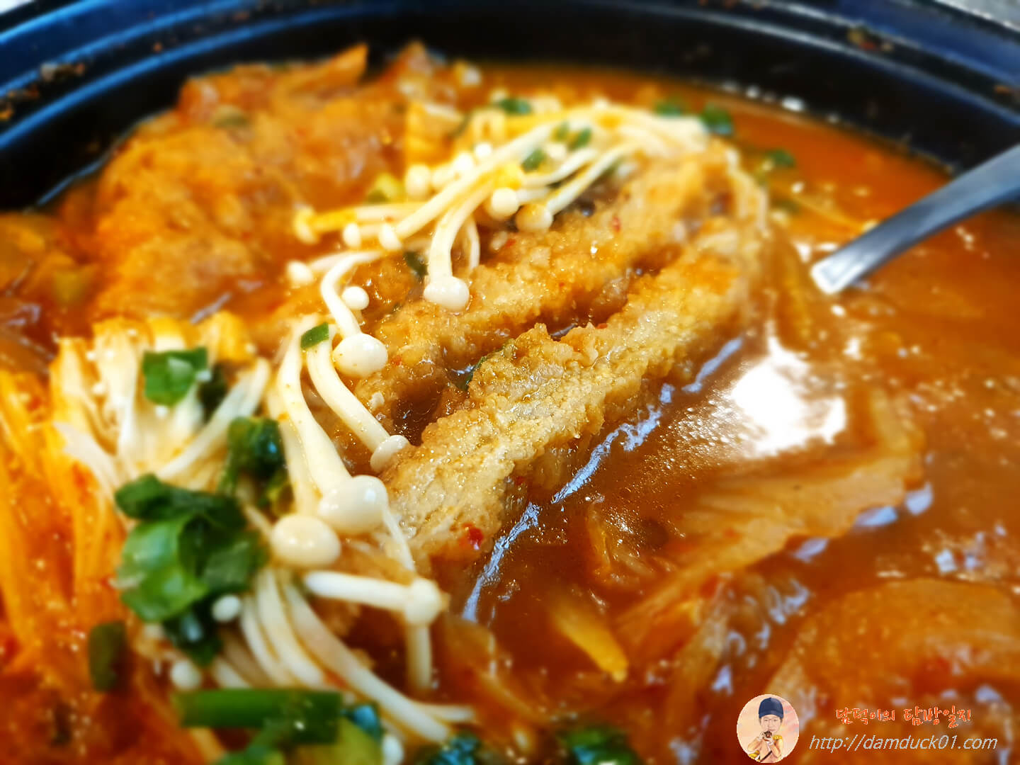 적셔진 돈가스를 싫어하지 않으신다면 얼큰한 김치찌개에 촉촉한 돈가스를 함께 즐긴다고 보시면 됩니다.