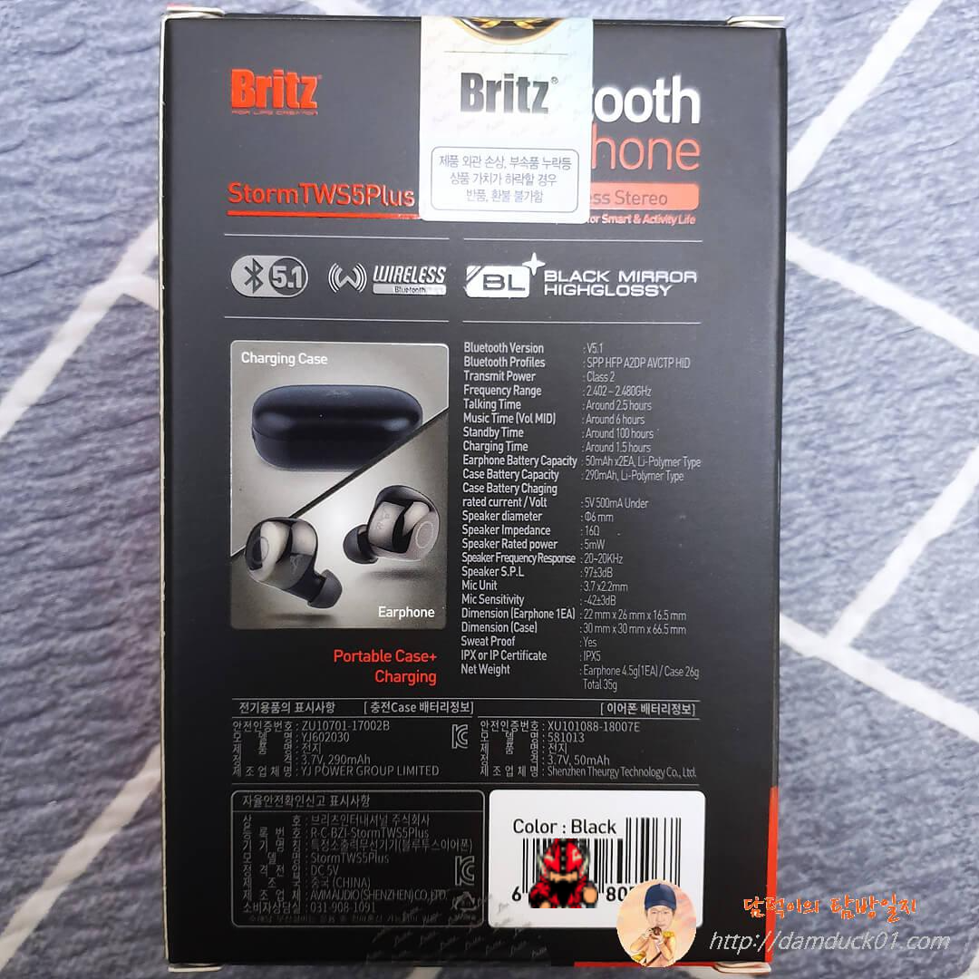 기존 StormTWS5와 스펙상 달라진 건 블루투스 버전밖에 없는데 이게 블루투스 버전 때문인지 브리츠의 SW가 개선된 건지는 모르겠는데 끊김이 확실히 줄었습니다. 영상을 볼 때는 당연히 손에 폰이 들려 있는 상태이고 이런 경우에는 끊김이 없고 저 같은 경우 청바지 뒷주머니에 폰을 넣고 음악을 듣는 경우가 있는데 이럴 경우에 StormTWS5의 경우에는 끊김이 꽤 있었거든요. 그래서 그냥 손에 들고 음악을 듣는 상황이 많았는데 StormTWS5Plus의 경우에는 청바지 뒷주머니에 폰을 넣고도 끊김이 줄어서 업그레이드 버전이라는 느낌을 제대로 느낄 수 있어서 좋았습니다.