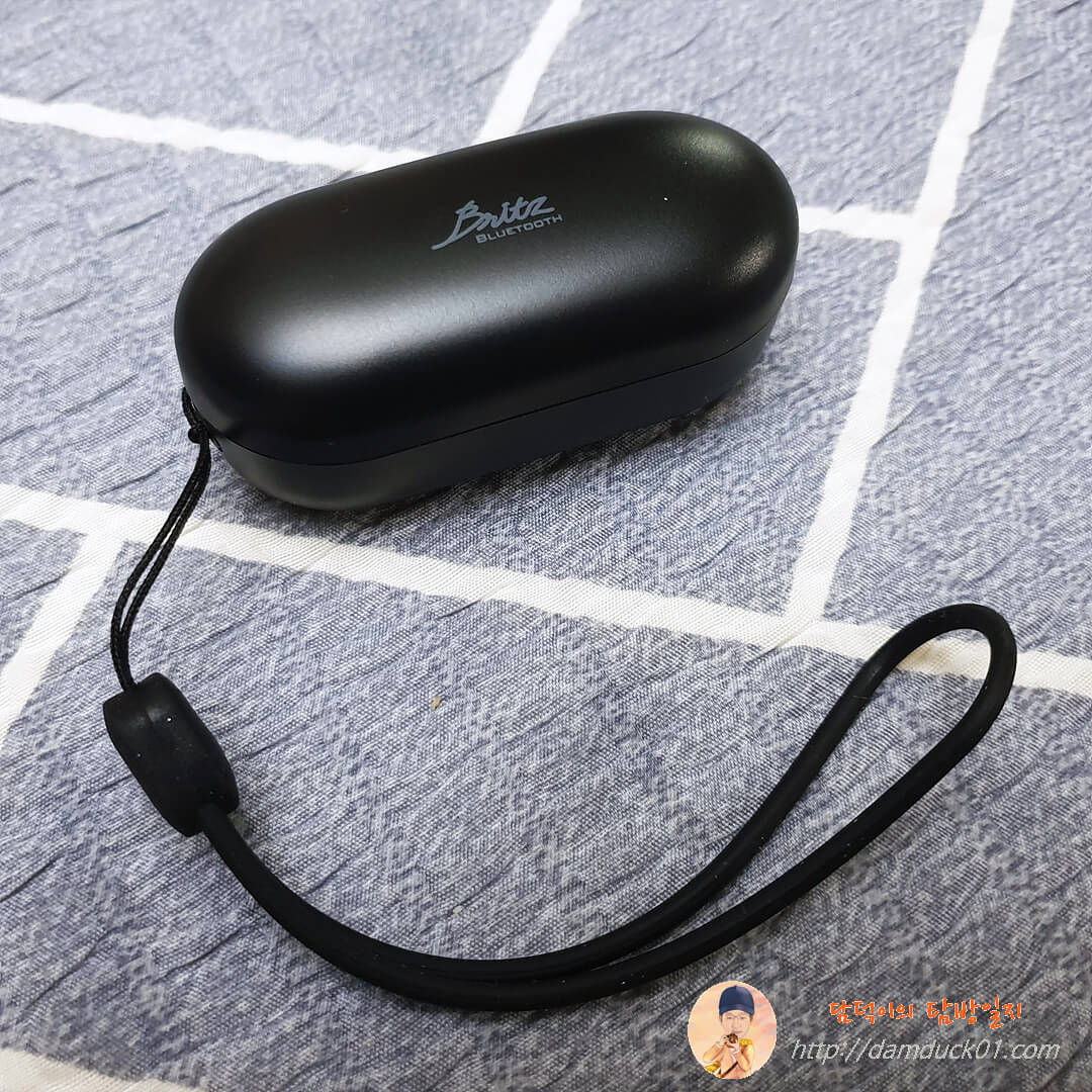 충전 케이스에는 스트랩이 연결되어 있는데 이 스트랩이 의외로 유용합니다. 이런 스트랩은 다른 제조사들도 달아줬으면 좋겠고 브리츠 역시 다른 제품들도 스트랩은 제공해 주면 좋을 거 같다는 생각이에요.