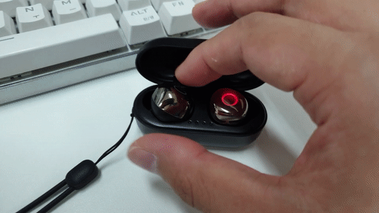 위 GIF 사진을 보시면 왼쪽 이어 버드를 케이스에 넣으면 충전 중으로 빨간불이 계속 들어와 있어야 되는데 깜빡이는 걸 보실 수 있죠. 이게 정확히 충전 단자에 붙어 있지 않고 틀어지는 현상이 있더라고요. 그래서 손으로 살살 움직여서 제대로 자리를 잡아줘야 제대로 충전이 되는 걸 볼 수 있는데 충전 케이스 뚜껑을 닫은 후 오른쪽 GIF 사진에서처럼 약간 흔들면서 뚜껑을 열어보면 그새 또 왼쪽 이어 버드가 제 자리에서 이탈해서 빨간불이 깜빡이는 걸 확인할 수 있어요.