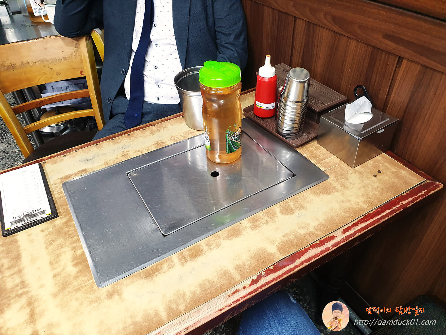 엄청 오래된 테이블입니다. 좋게 얘기해서 레트로라고 할 수도 있겠지만 저는 이런 건 좀 바꿔서 깔끔한 이미지를 주는 것도 좋을 거 같은데 의외로 이런 거 신경 안 쓰는 식당이 많은 거 같아요.