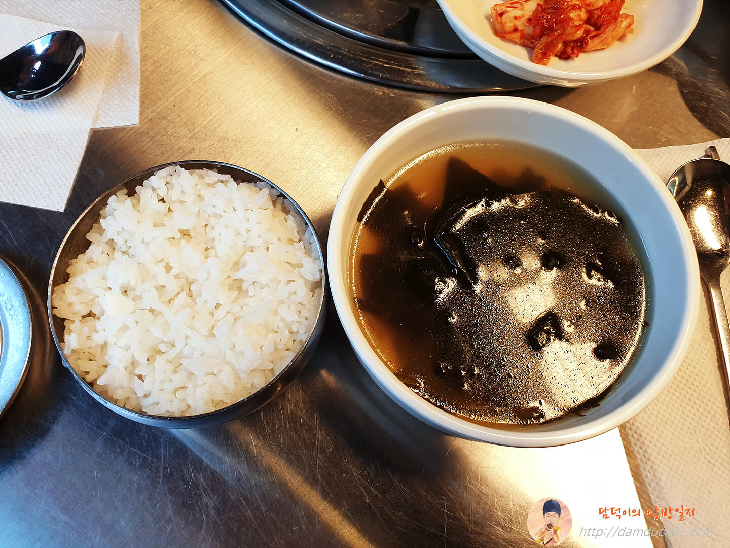 다른 탐방원은 고추장찌개백반을 주문하고 저는 제육 백반을 주문했는데 제육에는 이렇게 미역국이 나오는데 소고기가 없는 게 아쉽지만 6,000원의 가격이라 납득은 됩니다. 맛은 괜찮았어요. ^^
