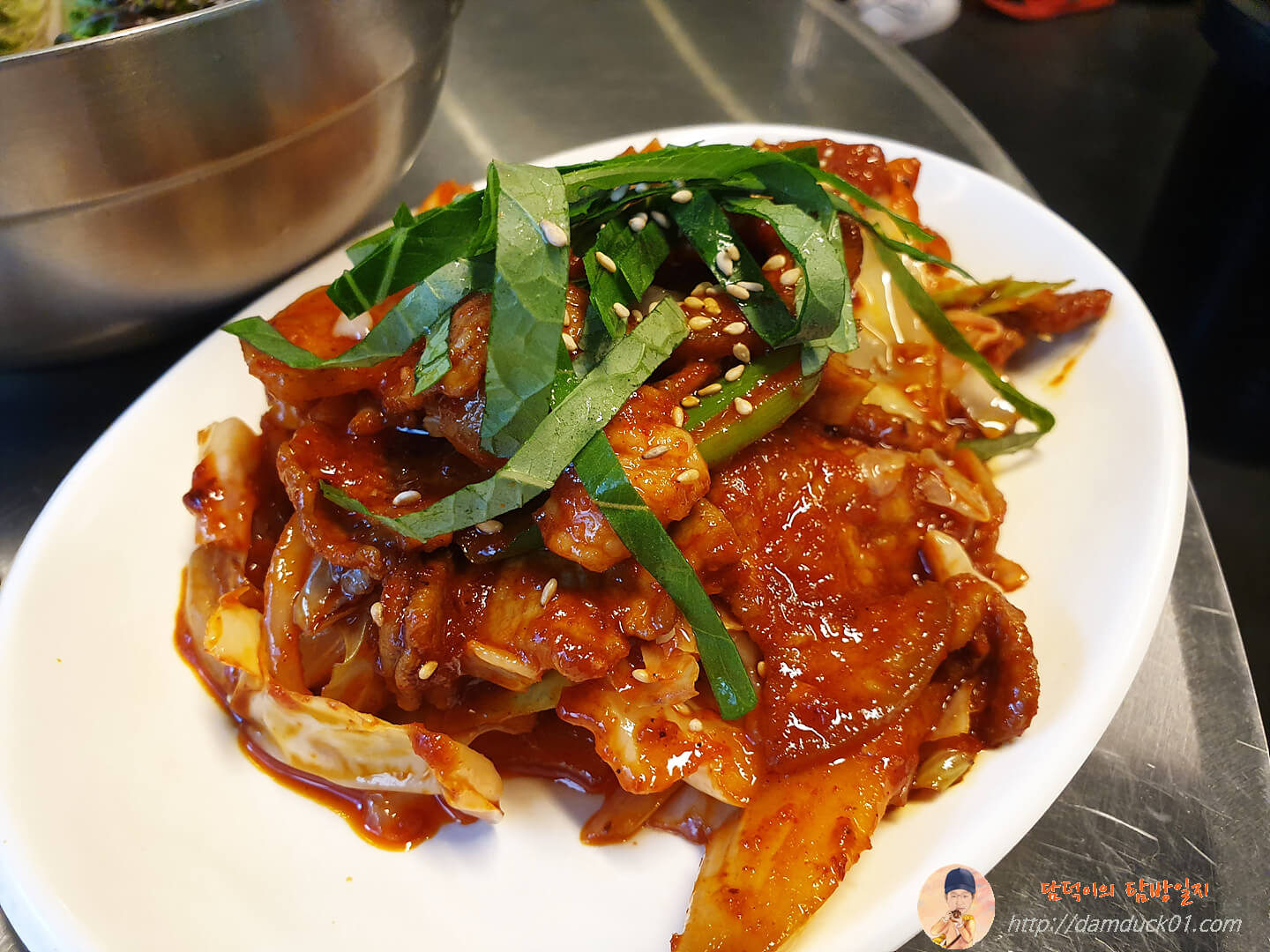 강화통통에서의 제육은 다리 살이 아닌 삼겹살을 사용합니다. 삼겹살로 하는 제육볶음을 싫어하는 분도 있던데 저는 나쁘지 않습니다. 삼겹살이나 목살이나 앞다리살이나 맛있으면 잘 먹어요.
