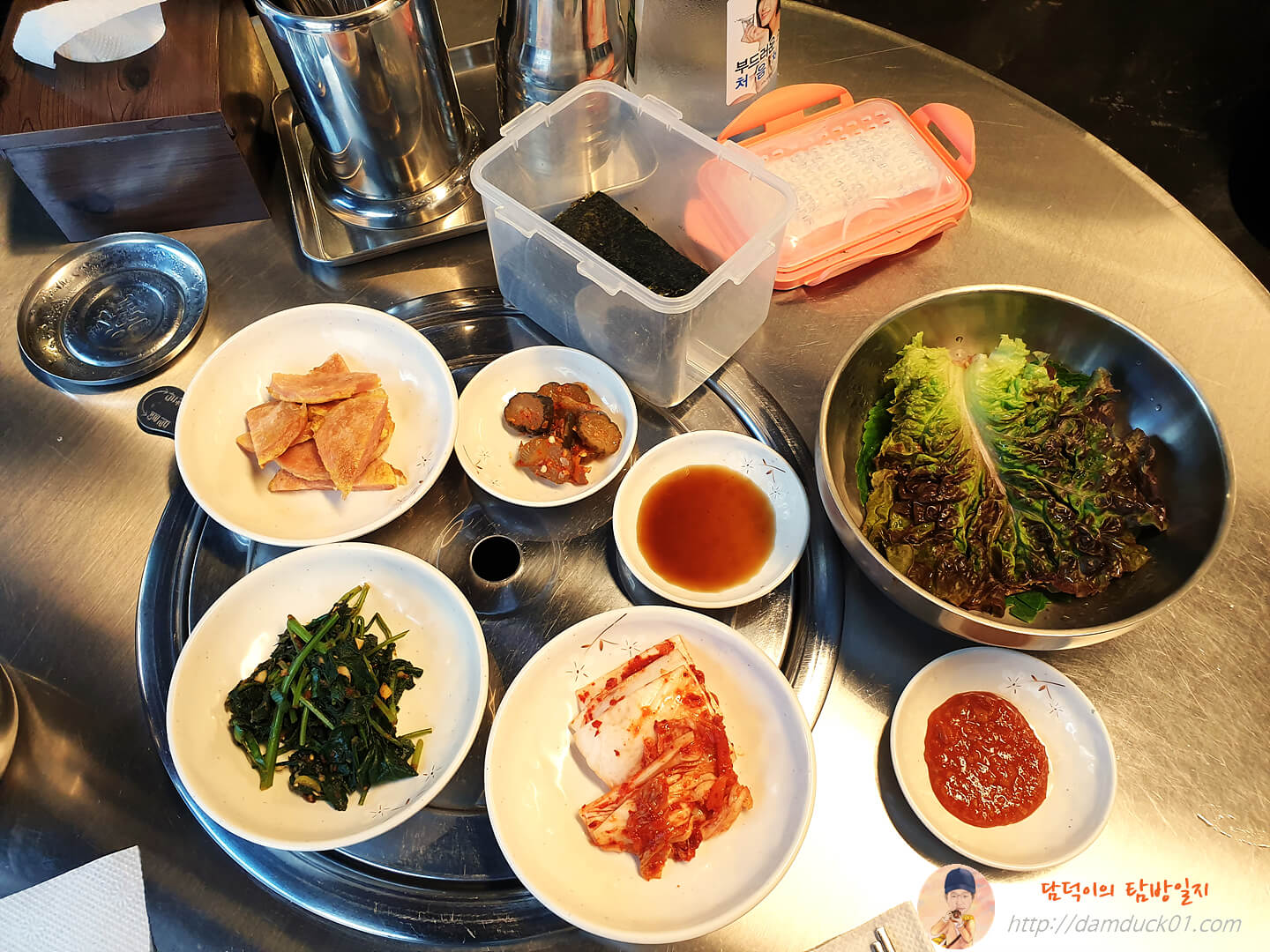 이렇게 몇 번 반복하면 식사는 끝이 납니다. 이렇게 쌈 싸 먹으면 밥을 금방 먹게 되는 거 같아요. 몇 번 먹으면 밥이 없다니까요. ㅋ