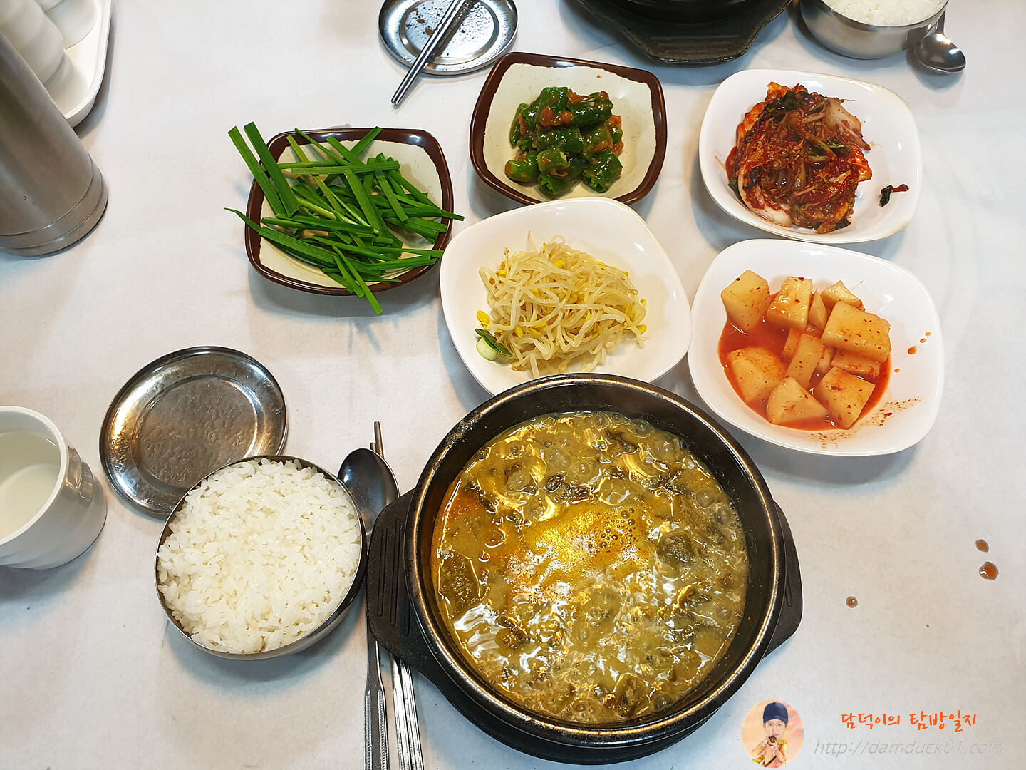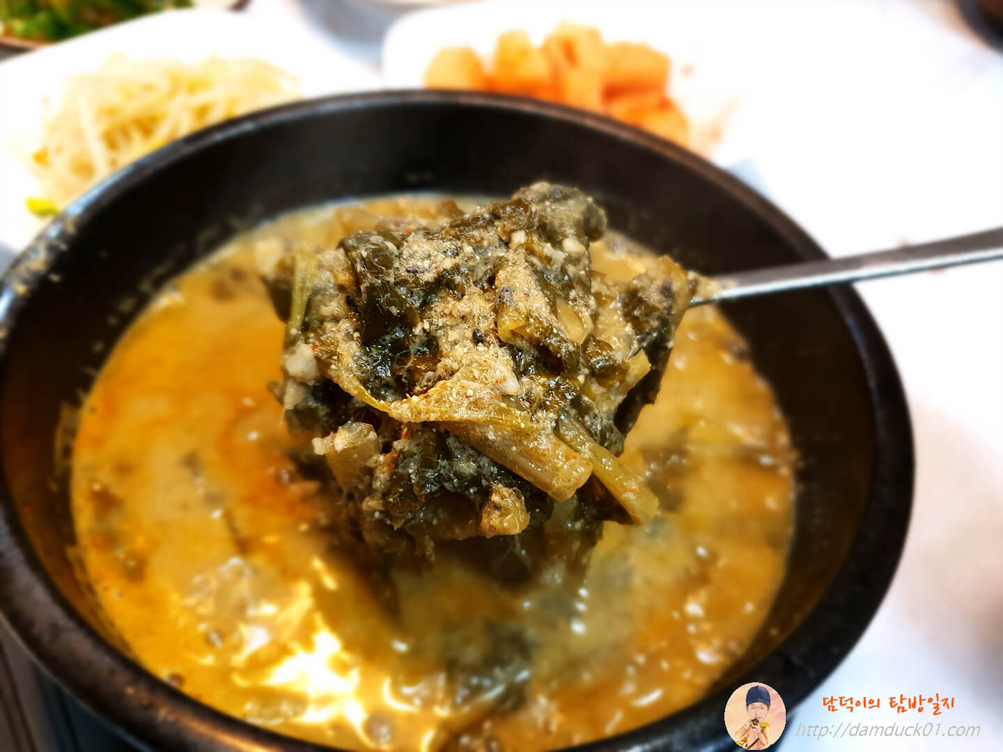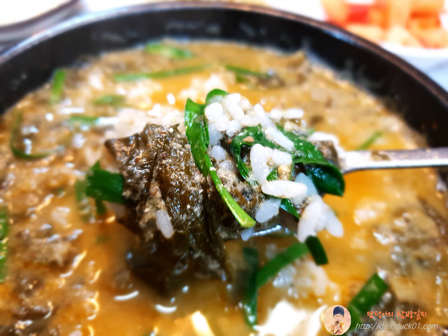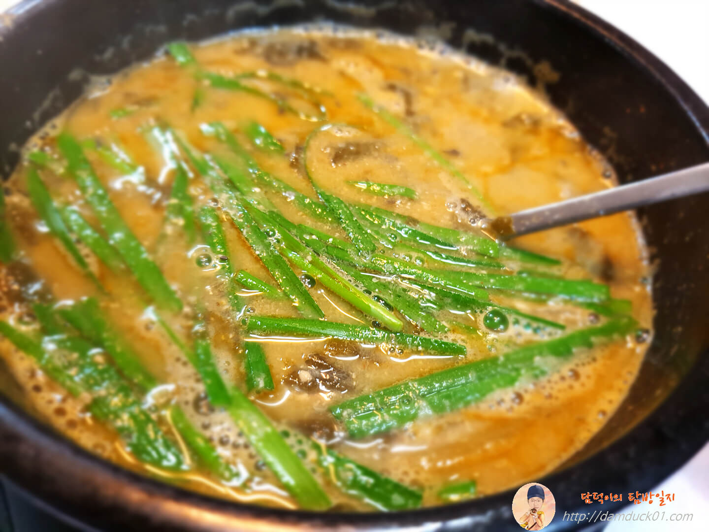 먹기 전 부추를 넣어주고 아~ 들깨 가루도 넣어주면 좋은데 어제는 깜빡하고 들깨 가루는 넣지 않고 먹었는데 Σ(゚Д゚; 그래도 맛있게 먹고 왔습니다.