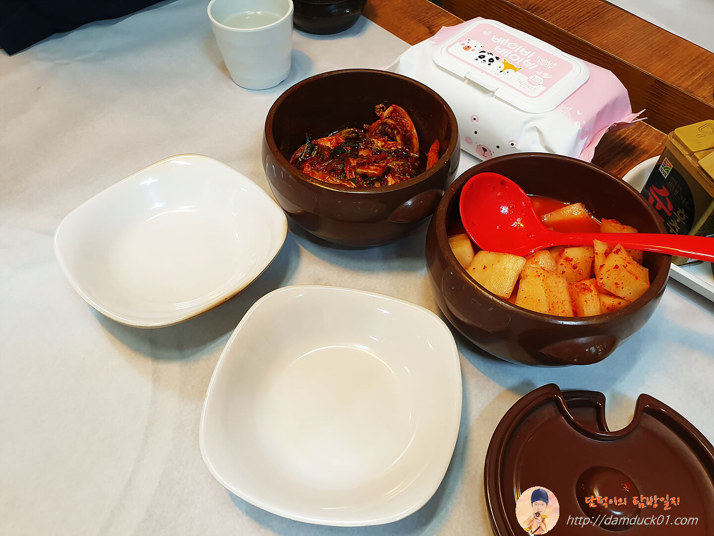 그리고 배추김치와 깍두기는 테이블에 준비되어 있으니 빈 그릇에 먹을 만큼 덜어서 먹으면 된답니다.