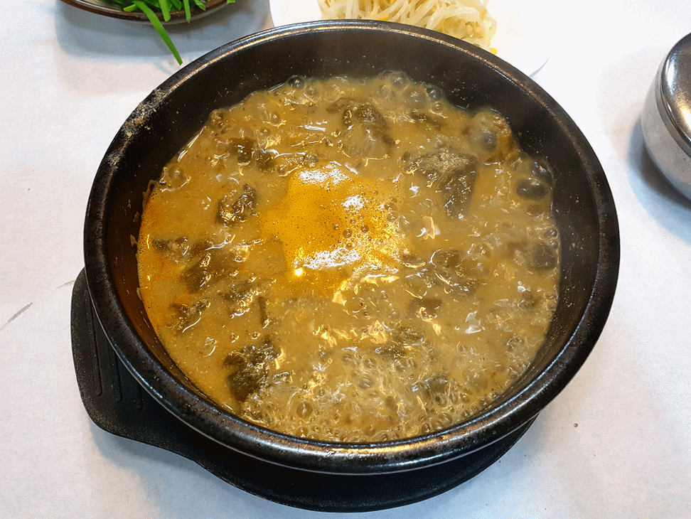 먹기 전 부추를 넣어주고 아~ 들깨 가루도 넣어주면 좋은데 어제는 깜빡하고 들깨 가루는 넣지 않고 먹었는데 Σ(゚Д゚; 그래도 맛있게 먹고 왔습니다.