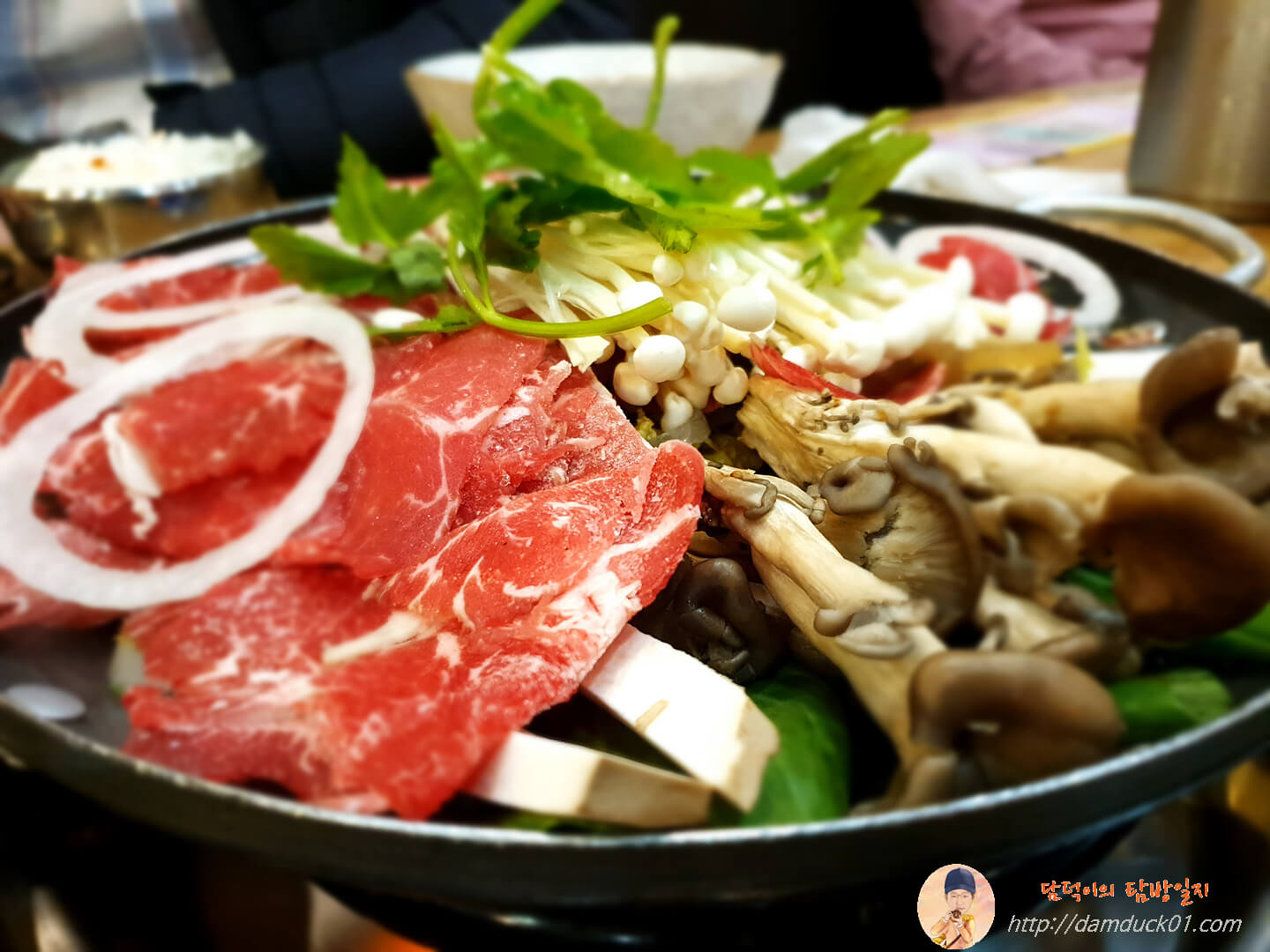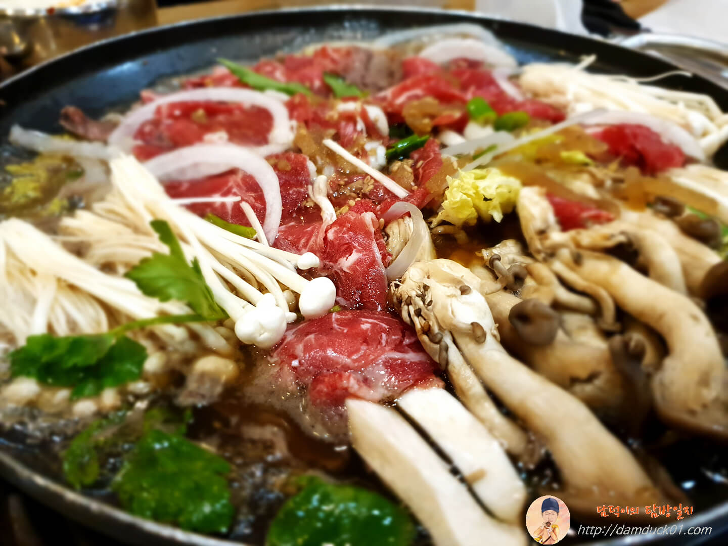 자세히 한 번 보면 아~ 고기 빛깔 진짜 맛있게 나왔어요. 일단 첫인상은 합격입니다. 육수는 안에 들어 있다고 합니다.
