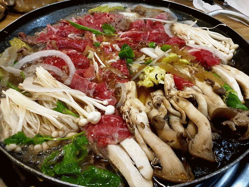 아직 바글바글은 아니고 보글보글 끓기 시작합니다. 이런 건 무조건 움짤 만들어 보는 거죠. 보글보글 불고기 전골.