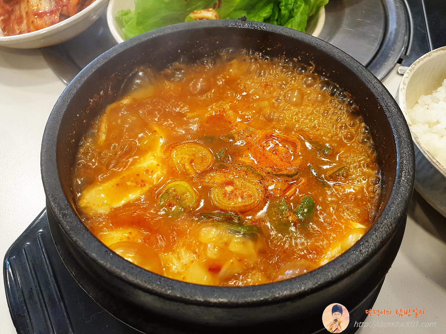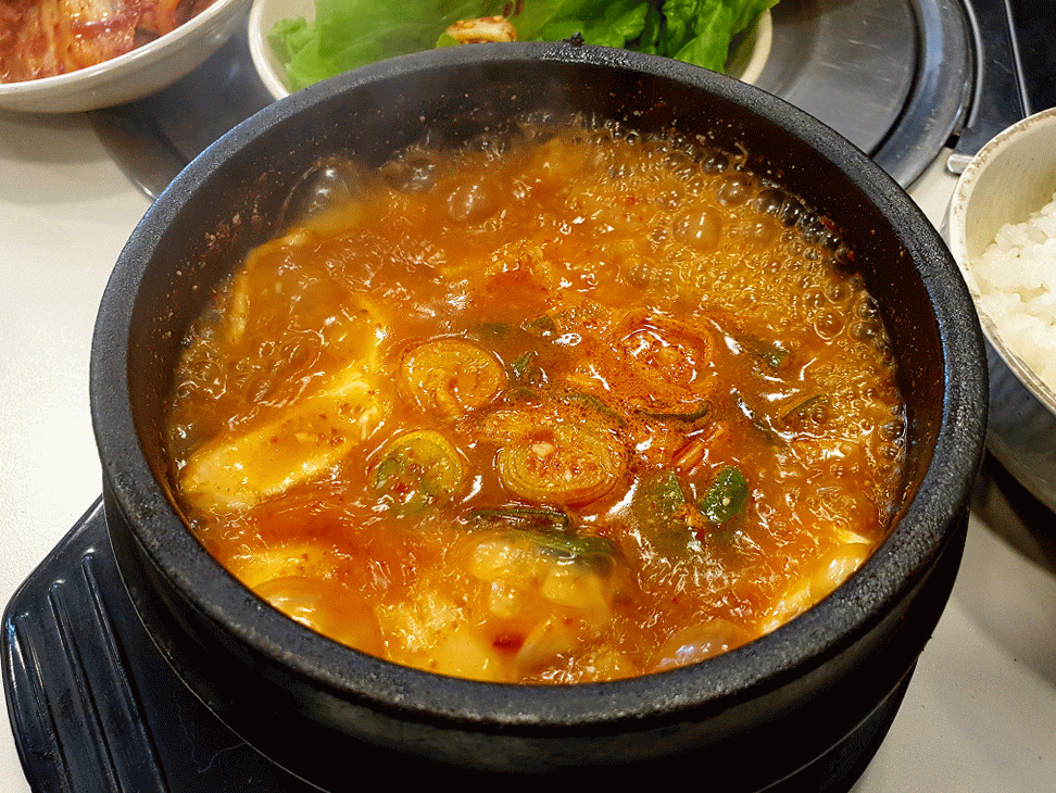 순두부찌개는 뚝배기에 나왔는데 뚝배기와 돌솥밥의 조합은 최고예요.