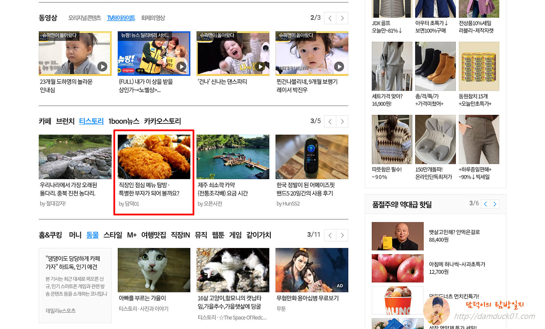 담덕이의 탐방일지 총 33번째 다음 메인 등록. 10월 두 번째 등록은 소박하네요.