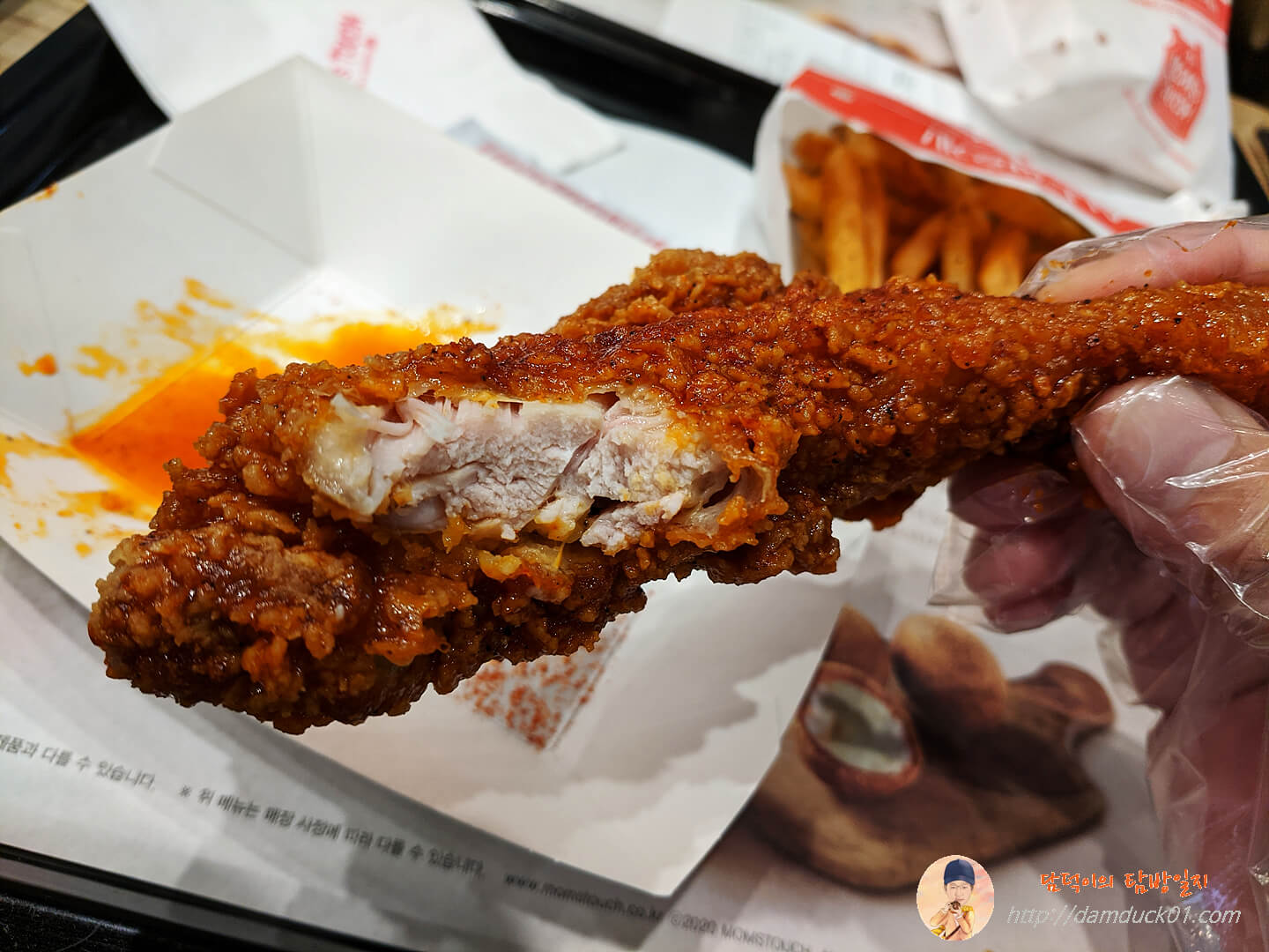 제가 실제 미국 남부지역에서 유명하다는 내슈빌 핫 치킨버거를 먹은 적은 없지만 주워들은 지식에 의하면 매운맛이 특징이라는데 맘스터치의 내슈빌 핫치킨버거도 그렇고 내슈빌 핫 통다리도 제대로 매운맛을 내주더라고요.