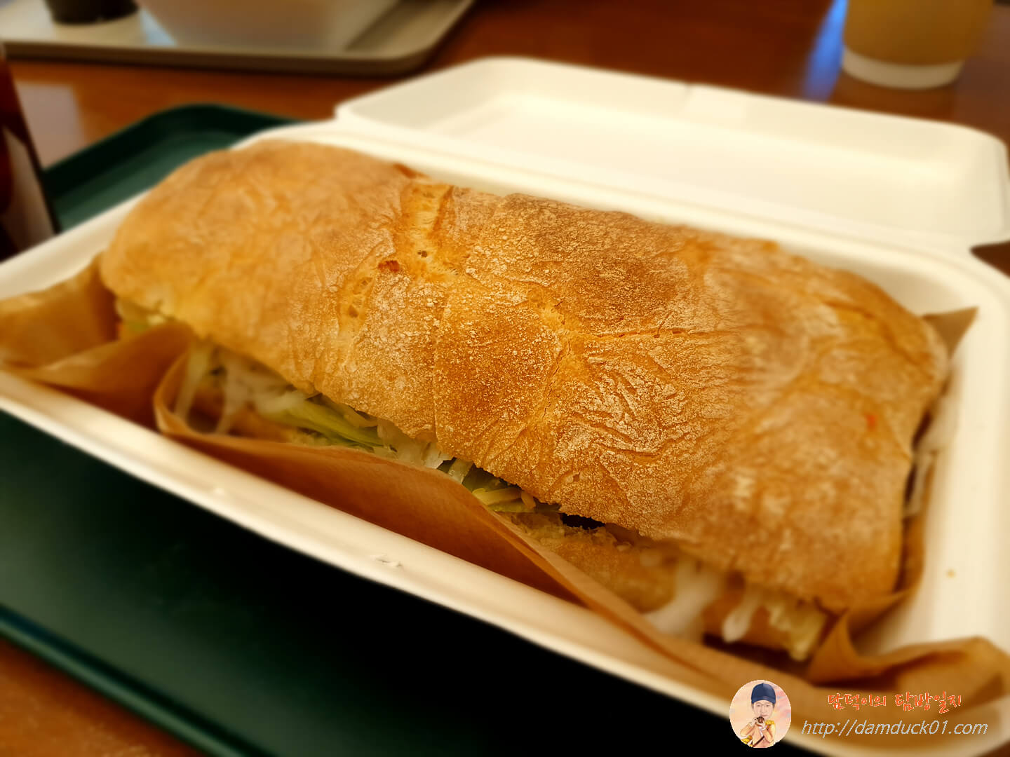 20cm의 큰 치아바타로 만든 샌드위치인데 속 재료도 일단 사진만 보면 먹어 보고 싶게 생겼어요.