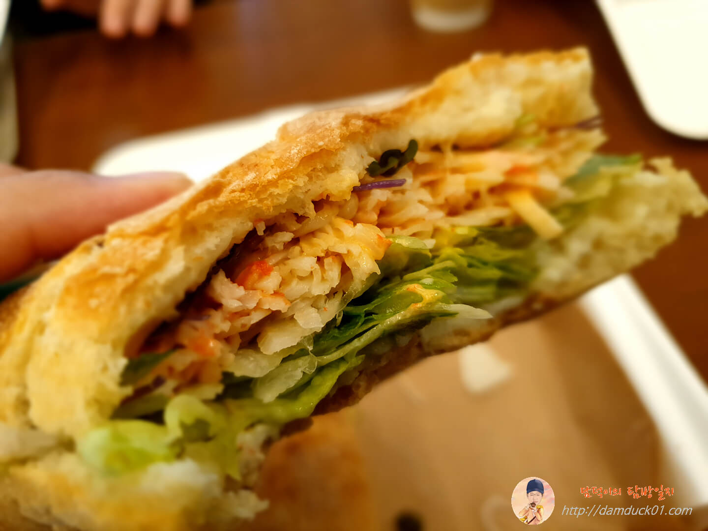 20cm의 큰 치아바타로 만든 샌드위치인데 속 재료도 일단 사진만 보면 먹어 보고 싶게 생겼어요.