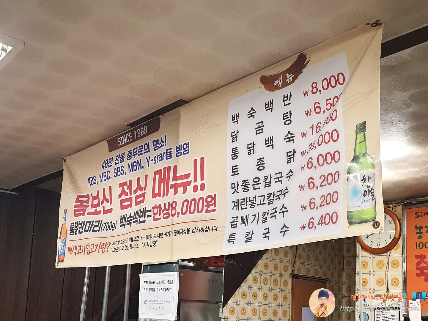 지난번 방문 때는 칼국수 메뉴판만 보고 주문을 했었는데 이번에 보니 메뉴가 꽤 있습니다. 다른 손님들이 먹는 백숙 백반이 시선을 사로잡았는데 함께 한 탐방원들이 칼국수를 주문해서 백숙 백반은 다음에 먹는 거로 하고 저는 닭곰탕을 주문했습니다.