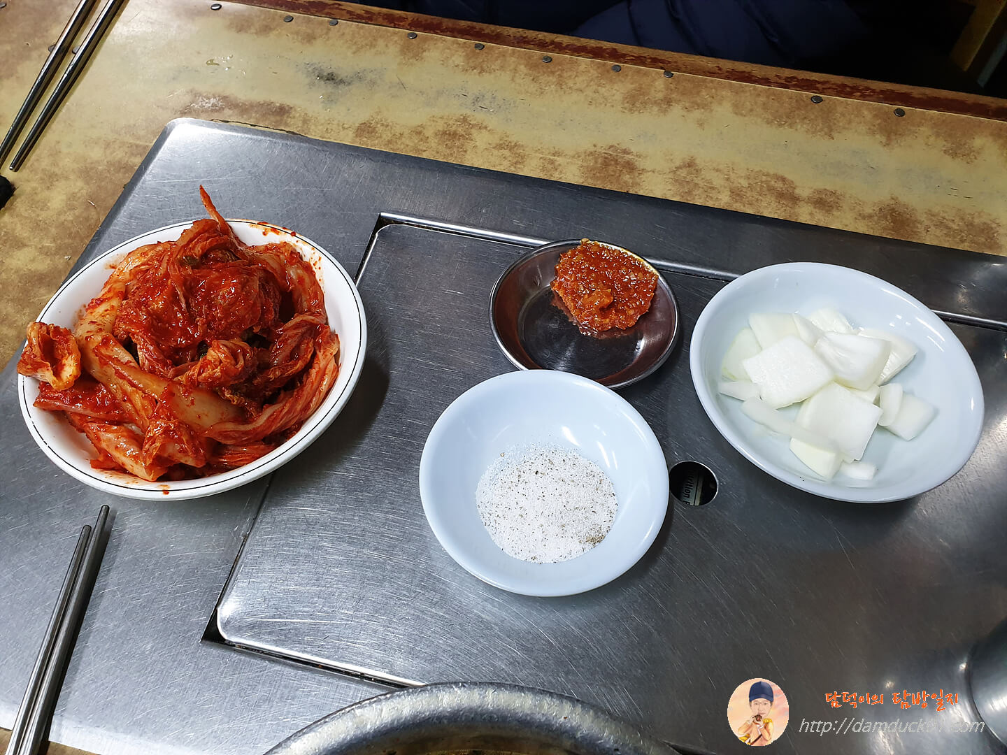 반찬은 별 거 없습니다. 그래도 지난번에는 김치 하나였는데 어제는 김치와 양파, 쌈장이 나왔습니다.