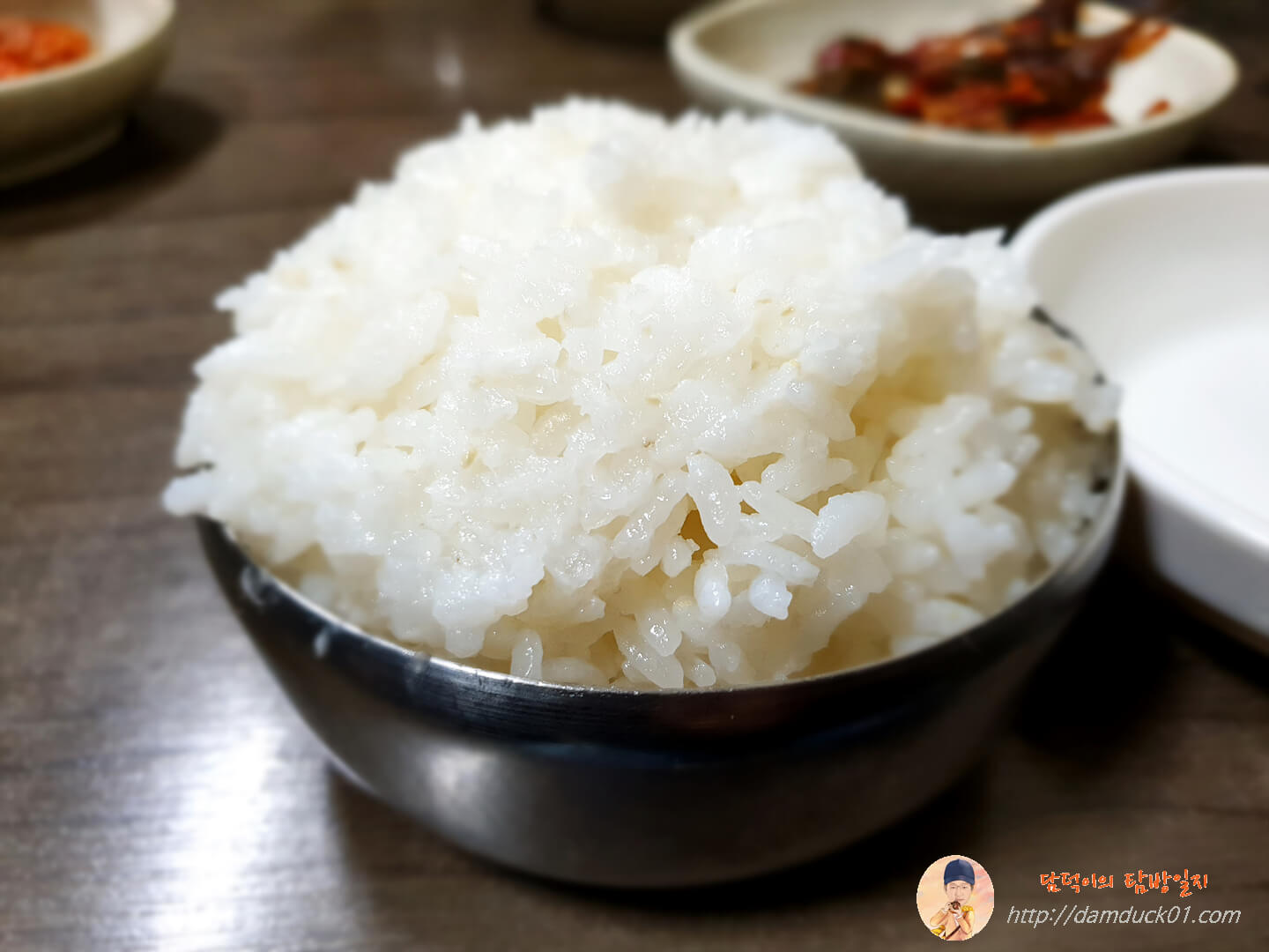 밥그릇이 큰 건 아니지만 고봉밥이 나왔는데 밥이 좀 질게 됐더라고요.