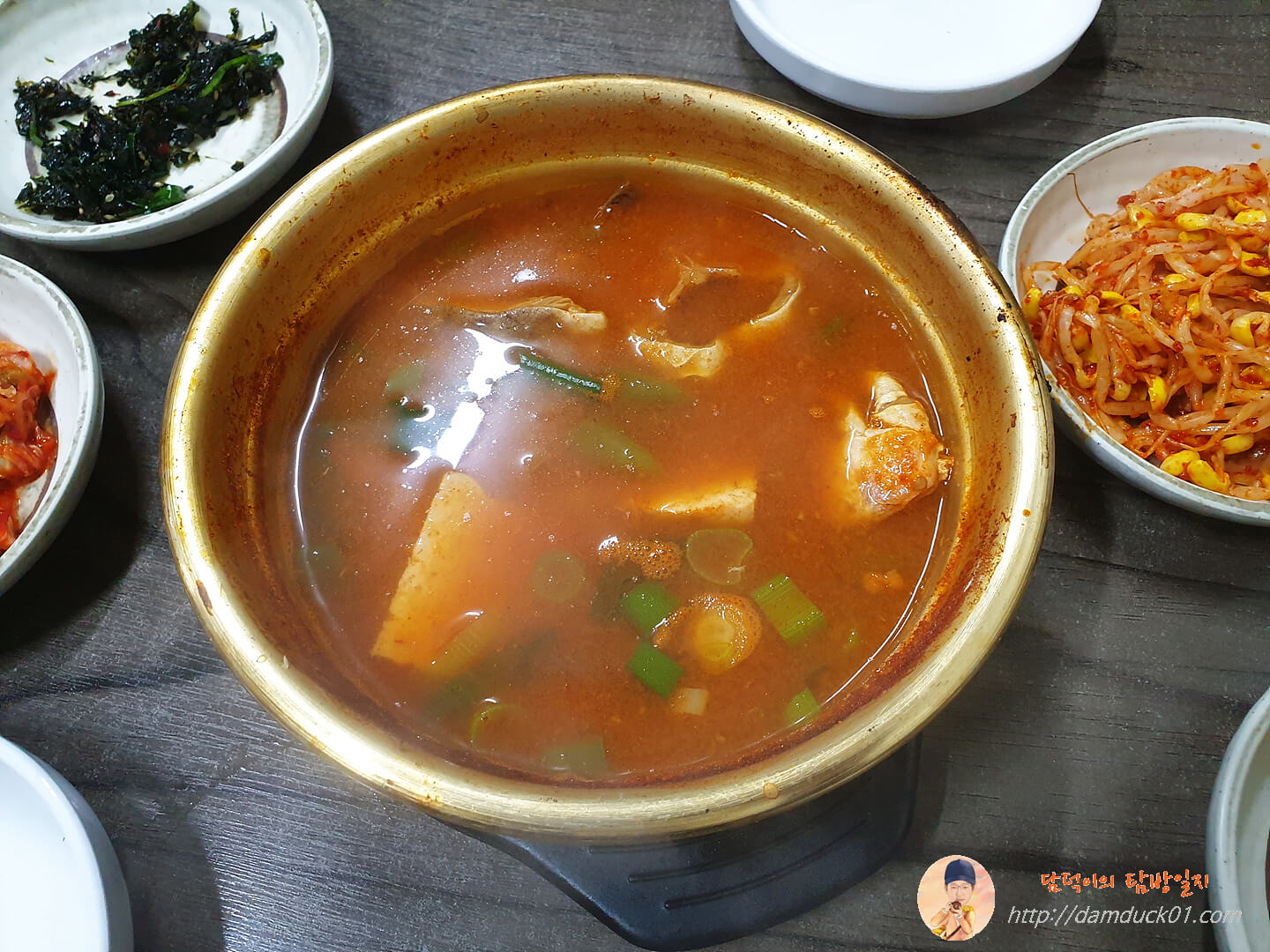 꽤 큼지막한 양은냄비에 칼칼해 보이는 비주얼의 동태탕이에요.